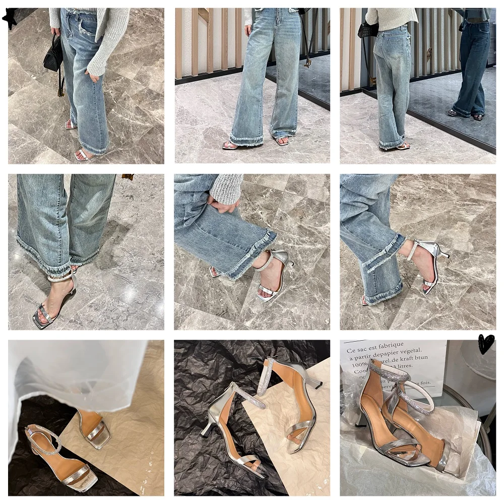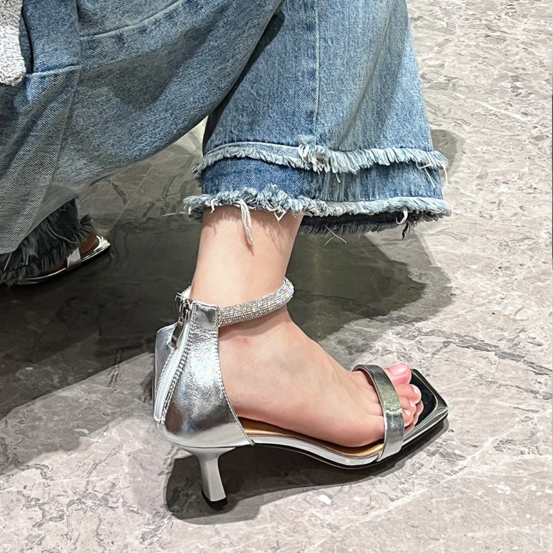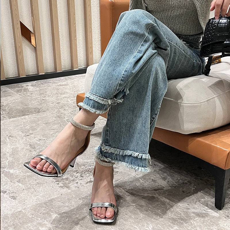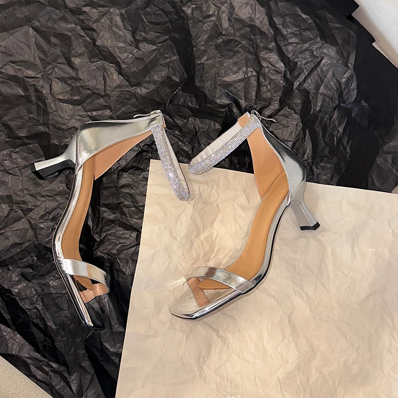 TAVIMART  -  Silver Sandals Women One Strap Slippers On Heel for Girls Women Paryty Wedding Shoes Luxury Crystals Elegant Summer Sandalias