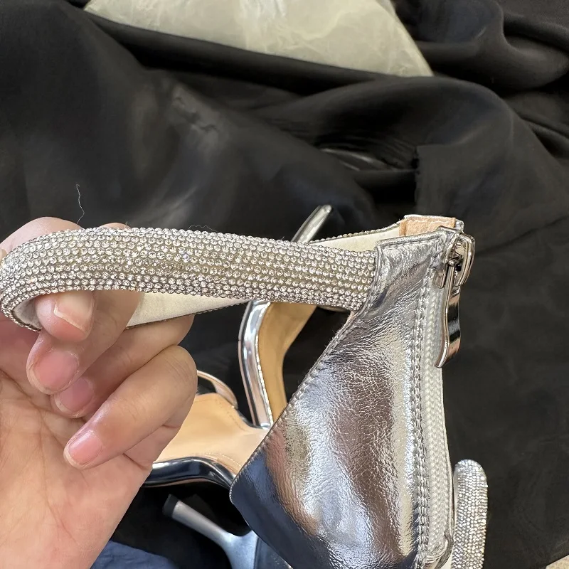 TAVIMART - Silver Sandals Women One Strap Slippers On Heel for Girls Women Paryty Wedding Shoes Luxury Crystals Elegant Summer Sandalias