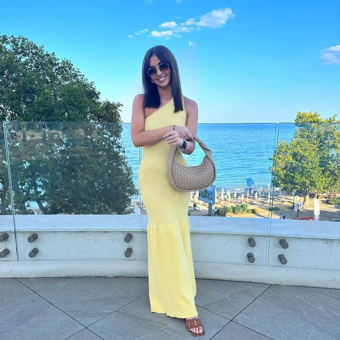 TAVIMART - Single Shoulder Sexy Tight Fitting Patchwork Party Spicy Girl Knitted Fishtail Dress for Women