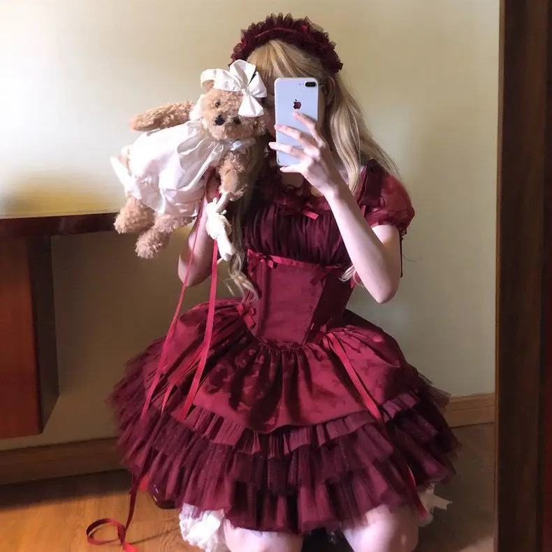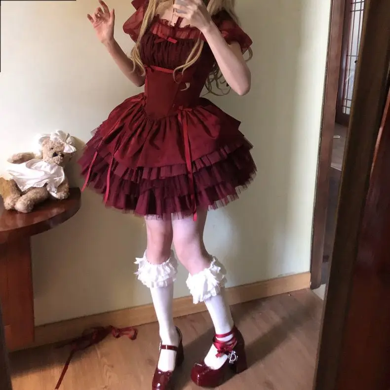 TAVIMART - Small Ribbon Lolita Retro Ballet Style Sp Lolita Puffy Dress Jsk Red Dreamy Purple Cake Dress Princess Dress Women
