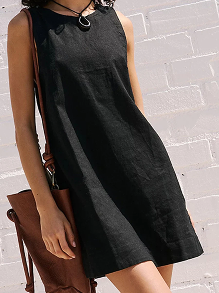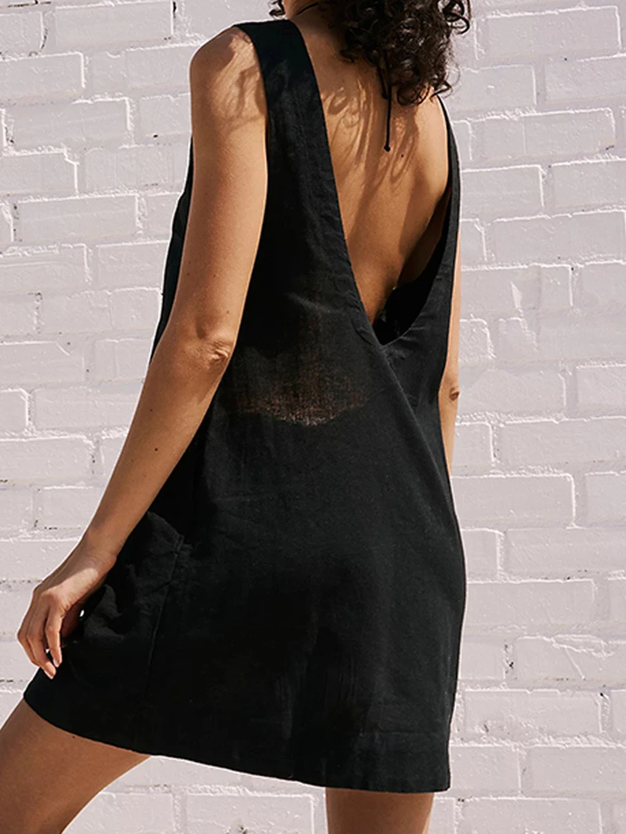 TAVIMART - Solid Color Backless Mini Dress Women Crew Neck Sleeveless Simple Short Vestidos Summer Chic Casual Elegant A-line Dresses New