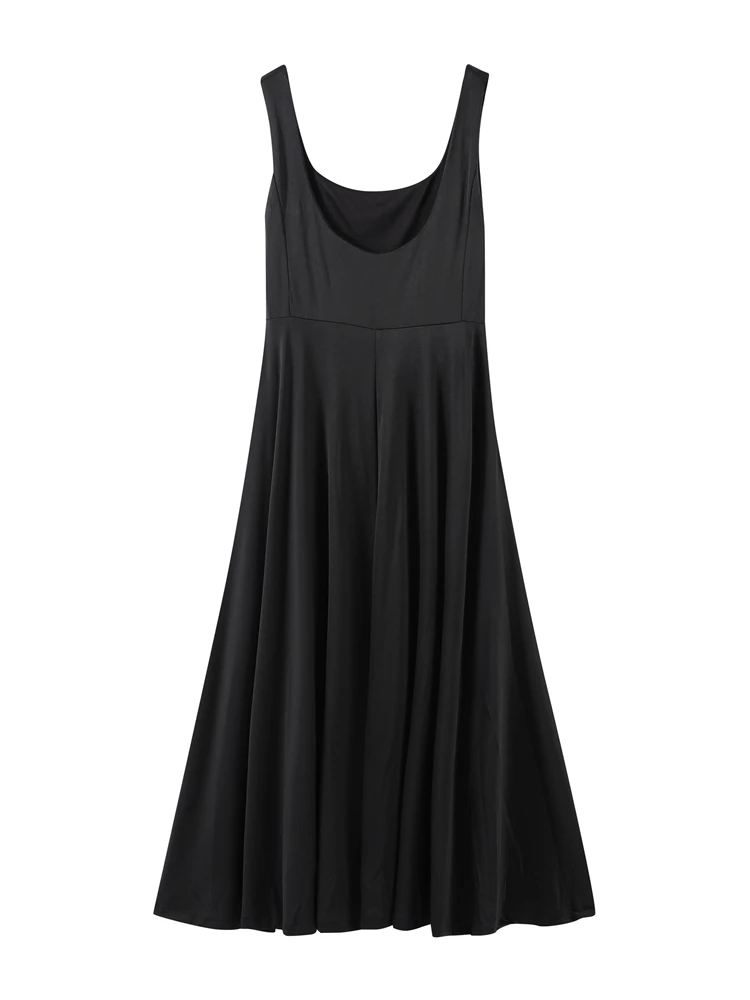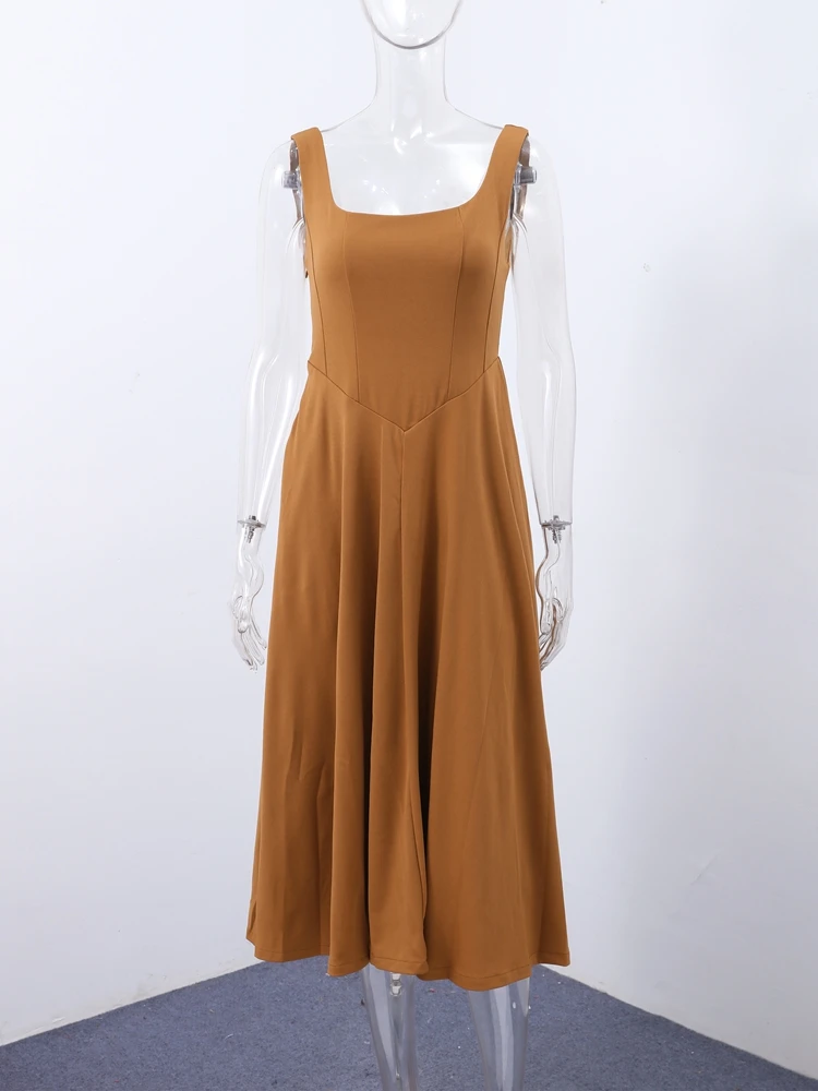 TAVIMART - Solid Color Halter Long Dress Straps Slim Fit Sexy Square Neck Suspender High Waist Pleated Beach Dresses Women's Party Robes