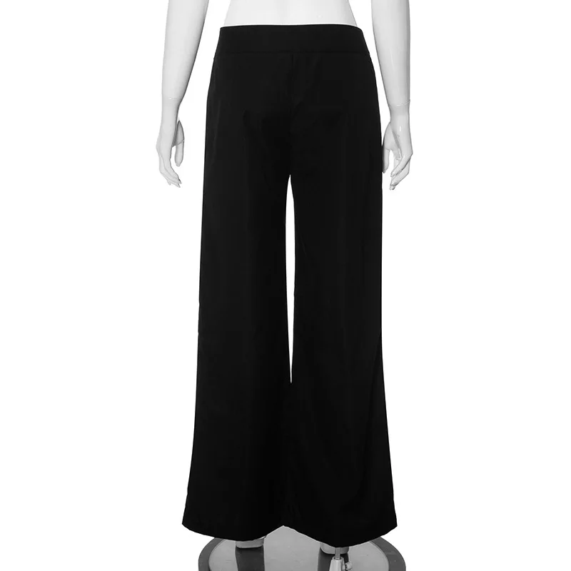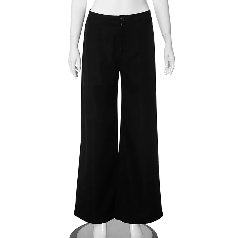 Tavimart Solid Long Baggy Pants Low Waist Streetwear Women Button Trousers Casual Patchwork Pantalones De Mujer Autumn Roupas Femininas