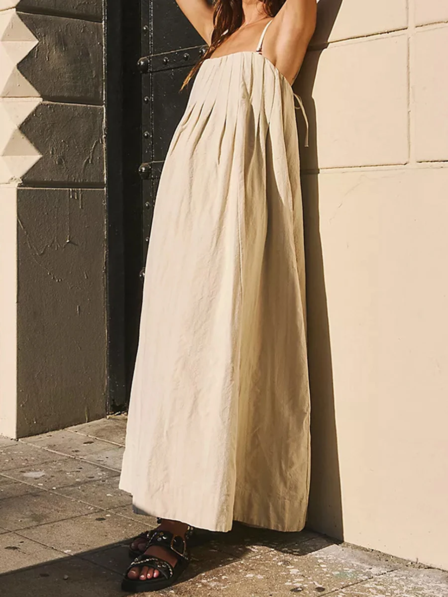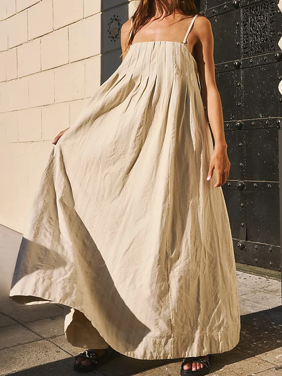TAVIMART - Solid Pleated Loose Long Dresses Women New Sleeveless A-line Suspender Maxi Dress Summer Beach Holiday Casual Fashion Vestidos