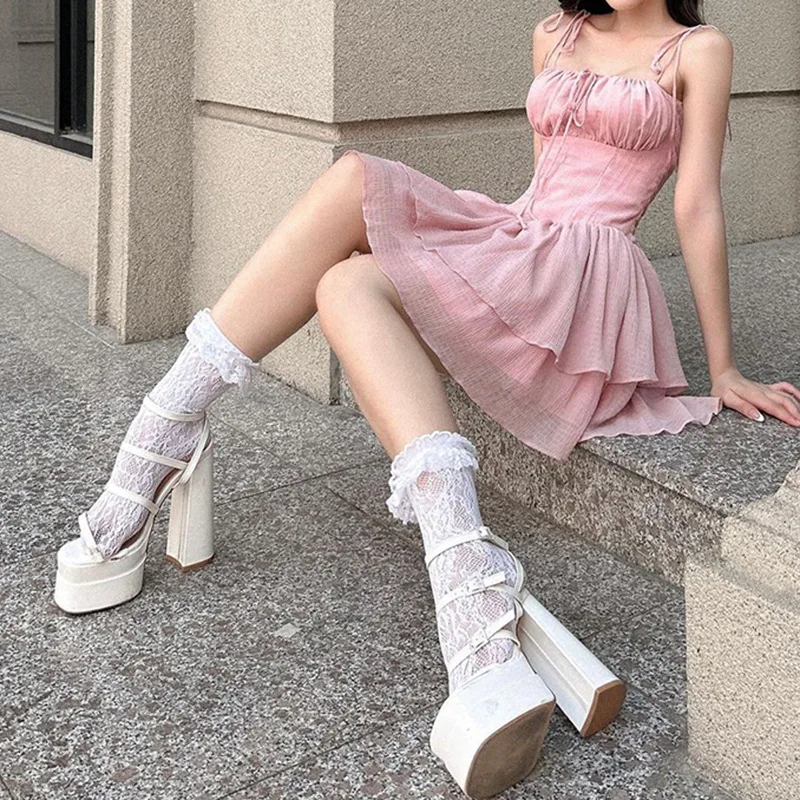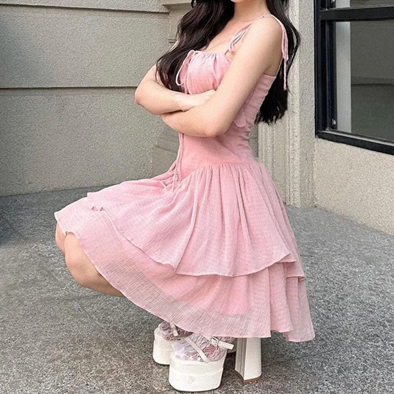 Tavimart Spaghetti Strap Dress Summer High Waist Thin A-line Sweet Short Dresses for Women Vintage Pink Party Dress Clothing