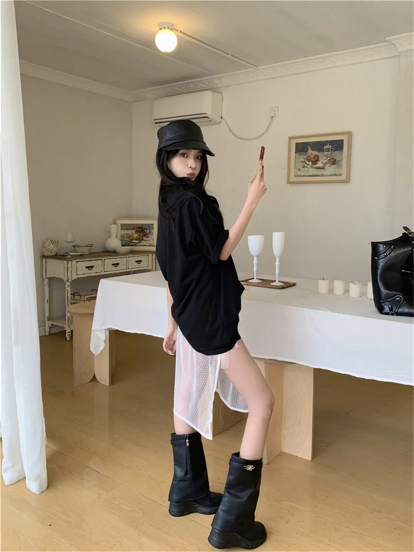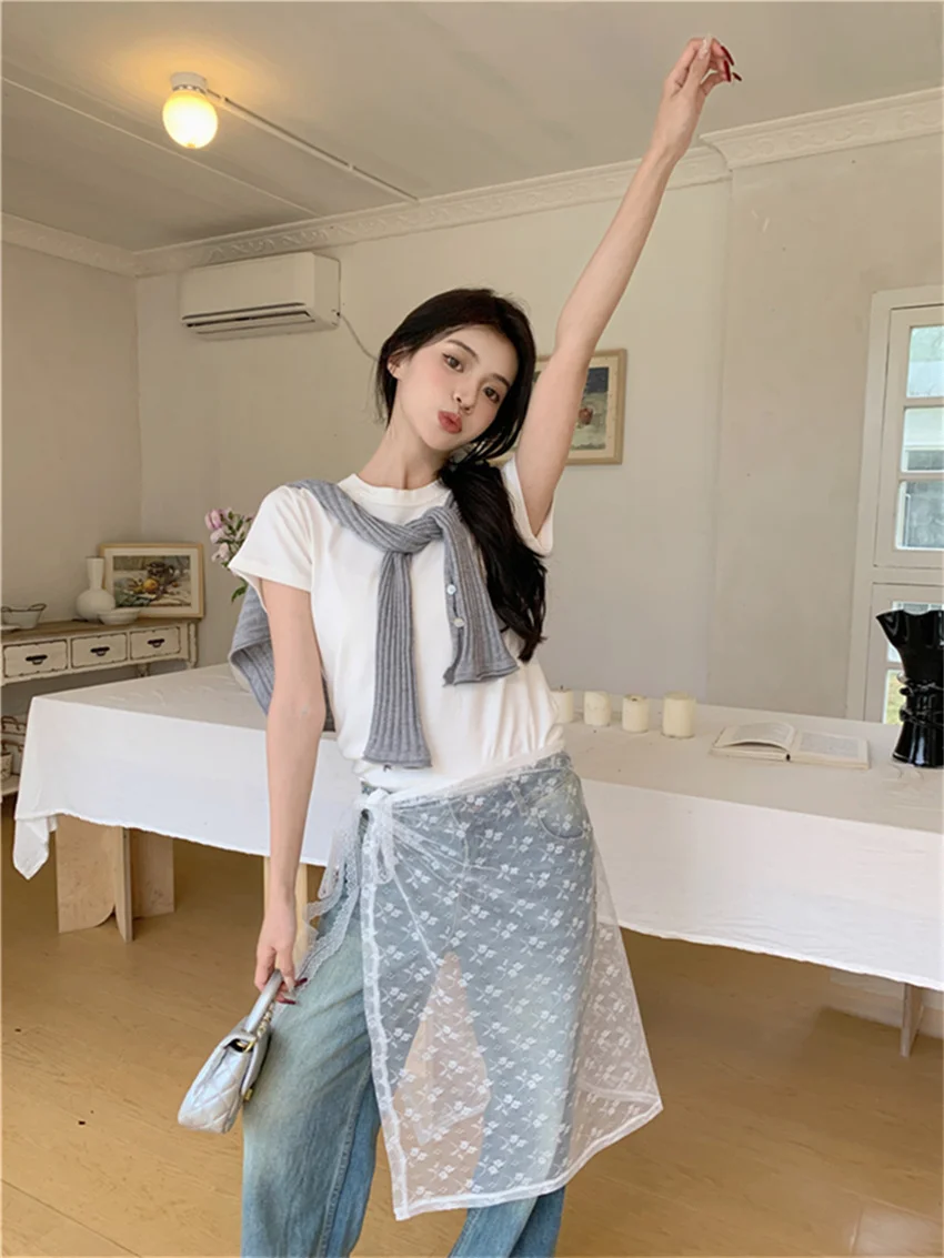 TAVIMART - Spring Polka Dots Long Skirts Chiffon New Lace All Match 2024 Office Lady Casual Chic Outwear Sweet Slim Women