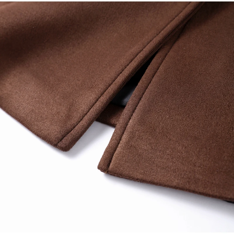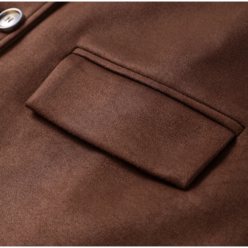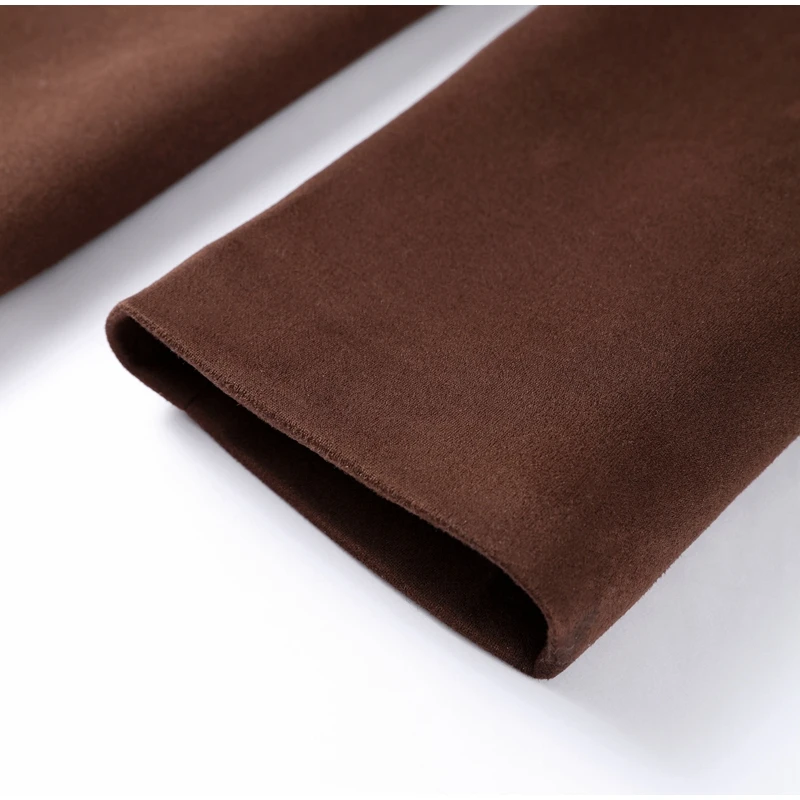TAVIMART - Suit Suede Leather Coat Women Brown Lapel Pocket Single Button Mid Length Jackets 2025 Spring Vintage Fashion Lady Outwear Top