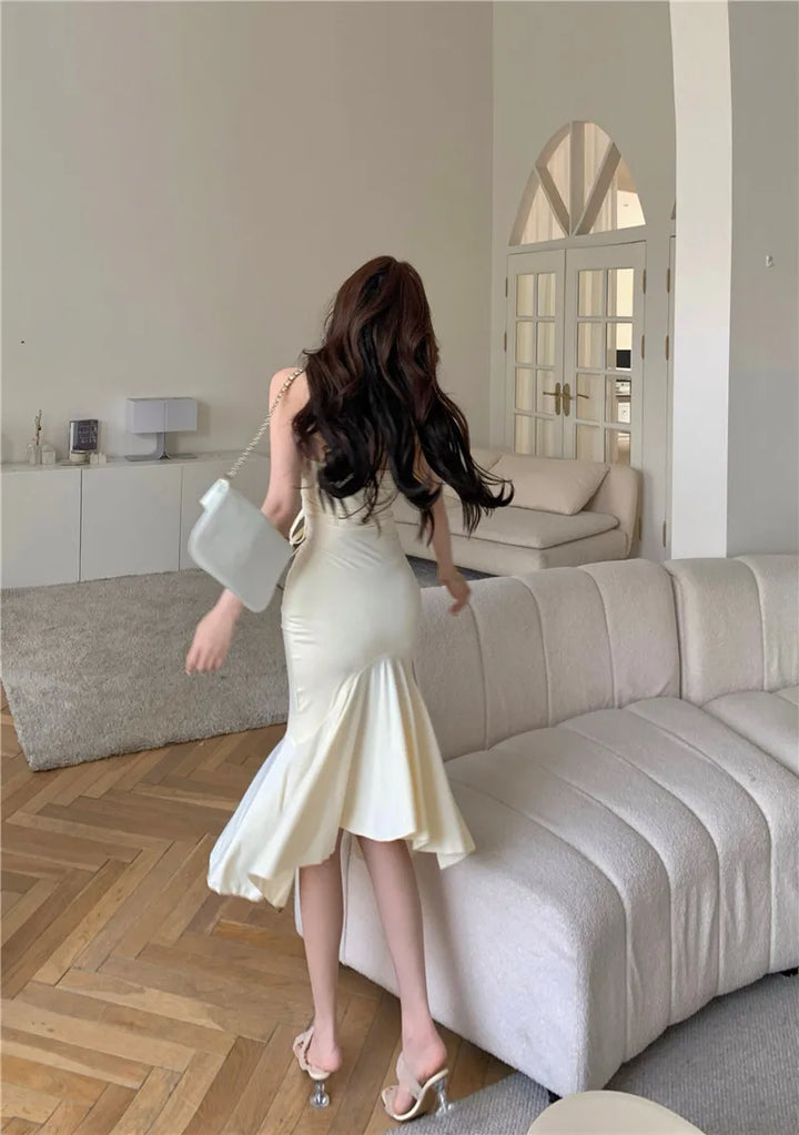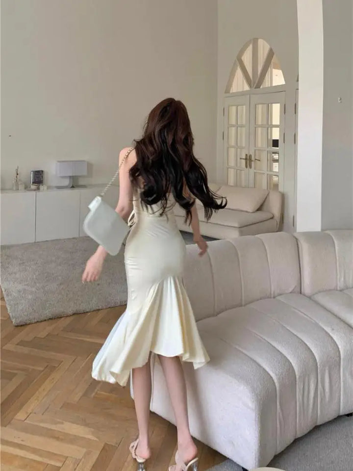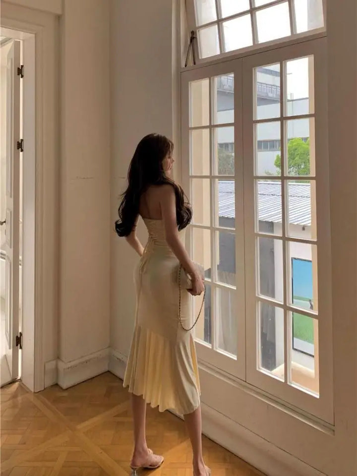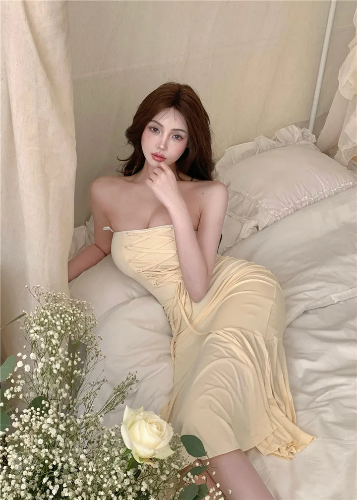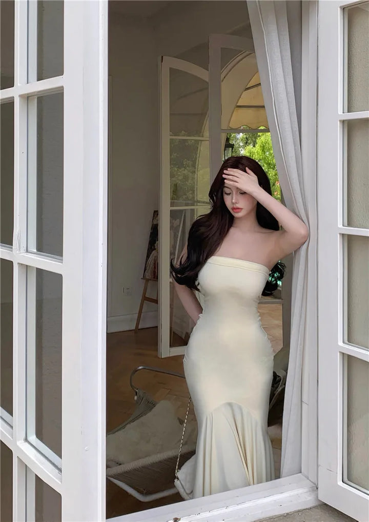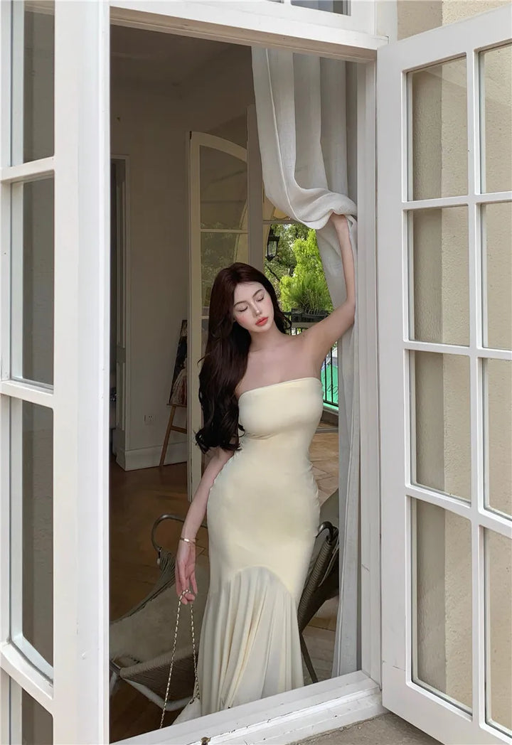TAVIMART - Summer Aesthetic Midi Dress Women Strapless Fishbone Bandage Irregular Dress Party Club Sexy Elegant Dresses Backless Solid