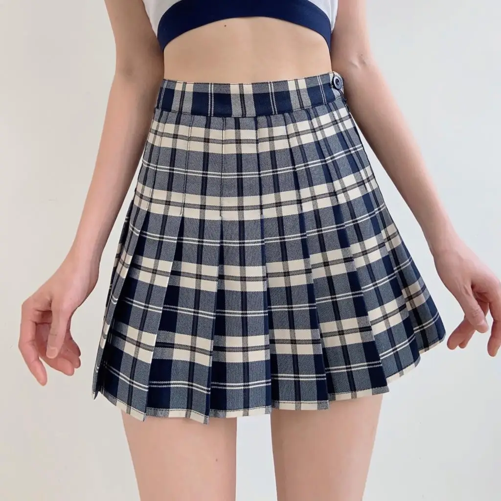 TAVIMART - Summer Black Mini Skirts For Woman Korean Fashion Plaid Skirts Women Y2k Tennis Skirts Vintage Pleated Skirts Preppy Style