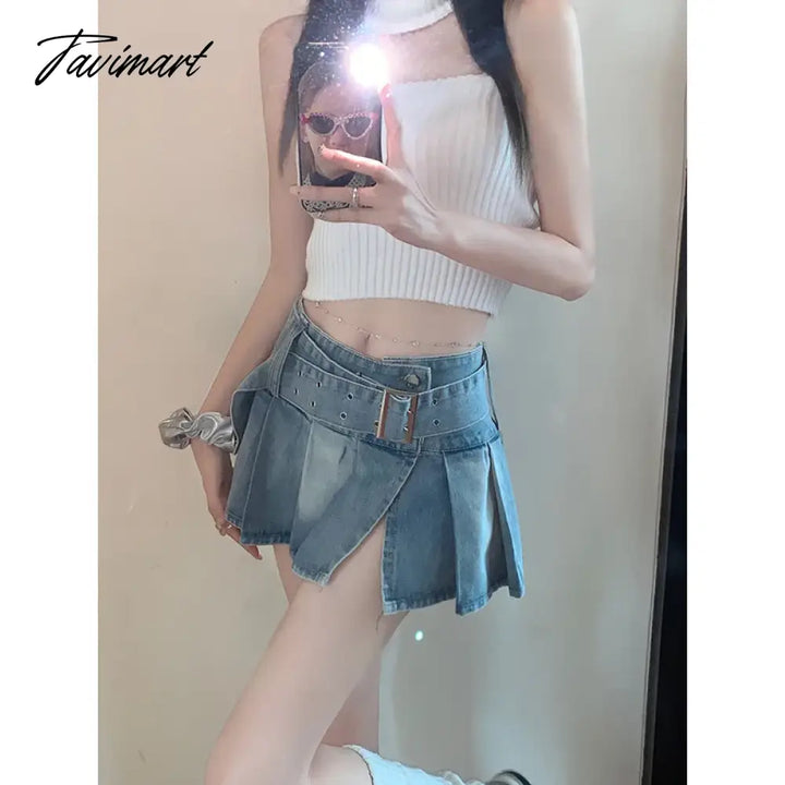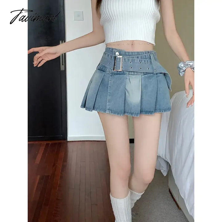 TAVIMART - Summer Blue Denim Mini Skirt Women Casual High-Waiste Harajuku Y2k Pleated Skirt Japanese Korean Style Fashion Clothing New