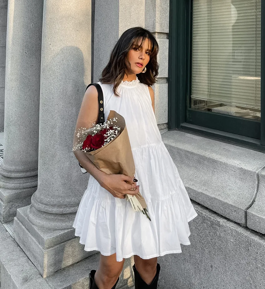 TAVIMART - Summer Cotton A-line Loose Ruffles White Dress Women Casual O-neck Lace-up Sleeveless Mini Dress Female Holiday Party Dress 2025