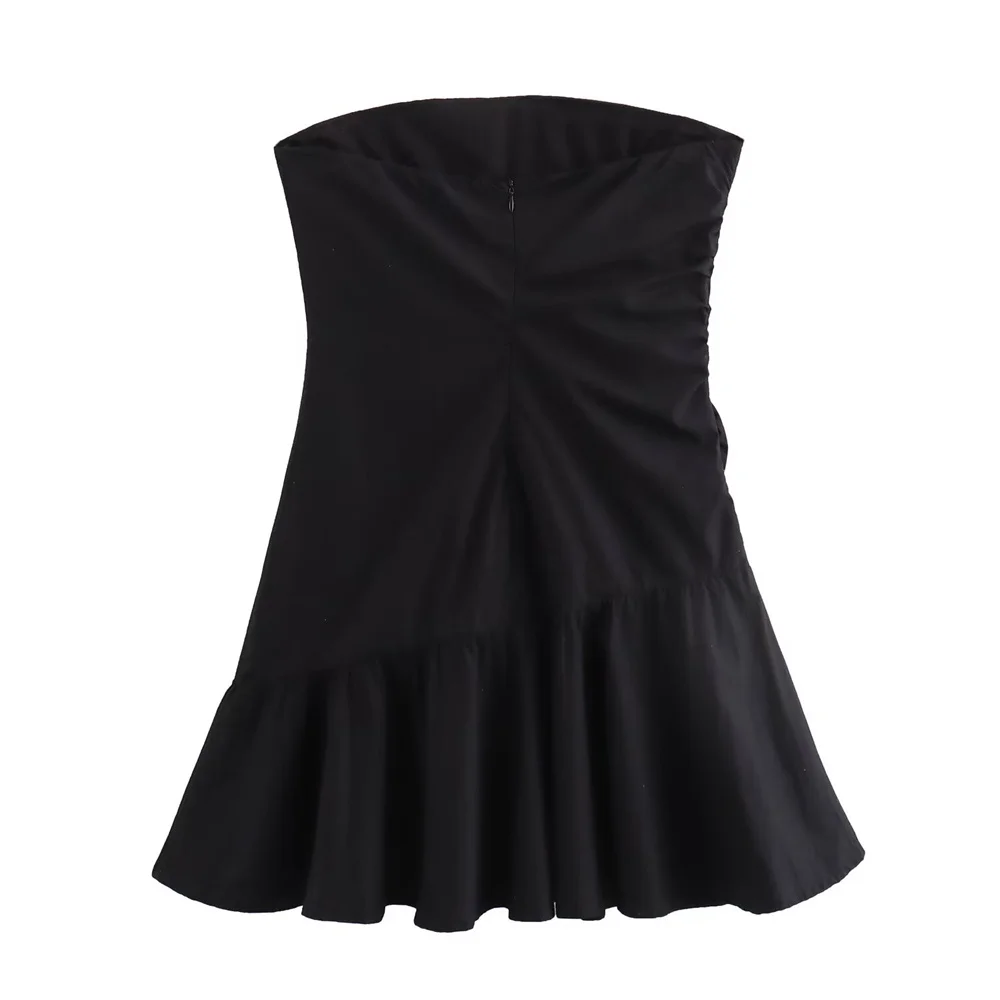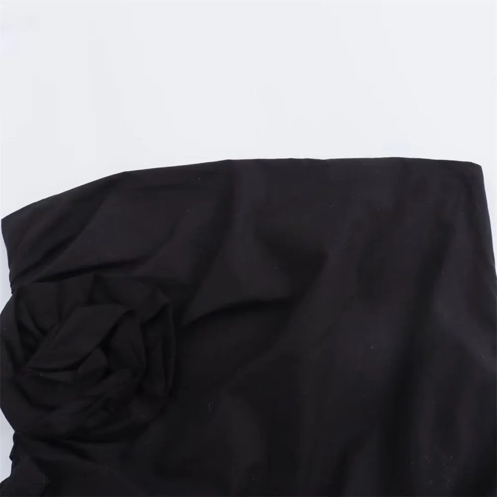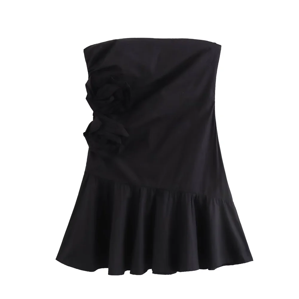 TAVIMART - summer new women's fashion solid color versatile casual flower decoration tube top sleeveless dress