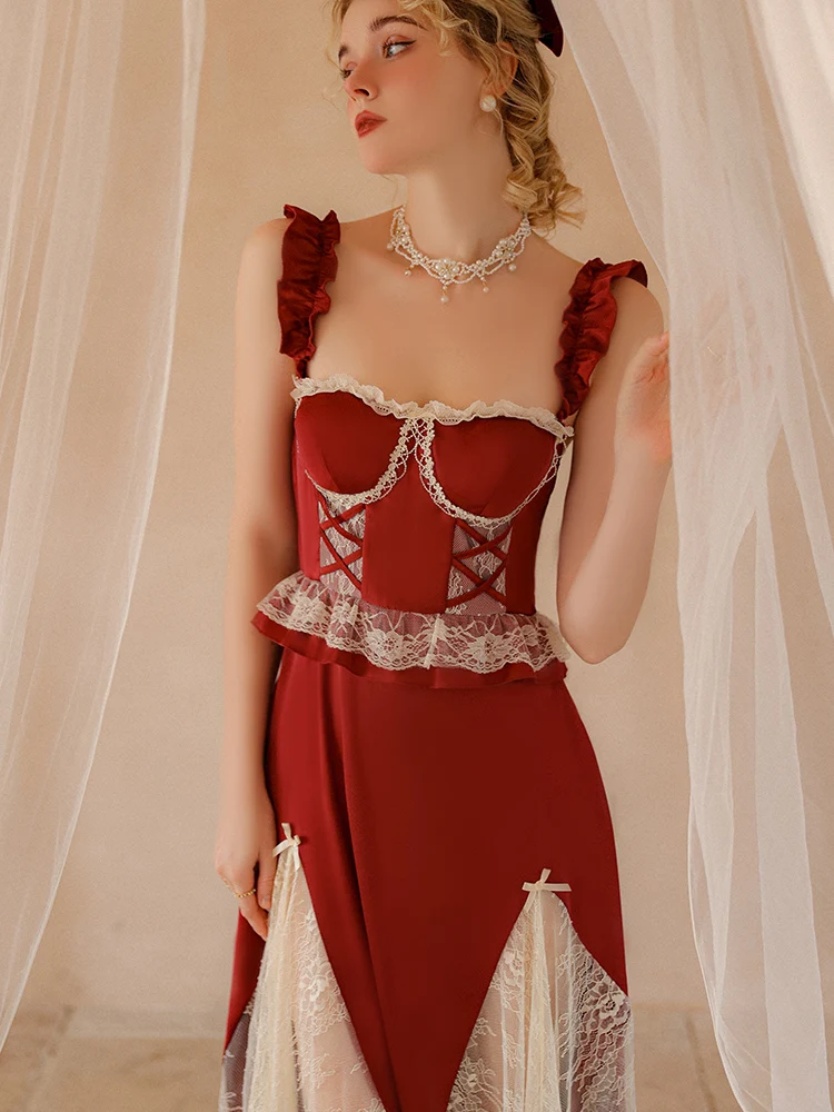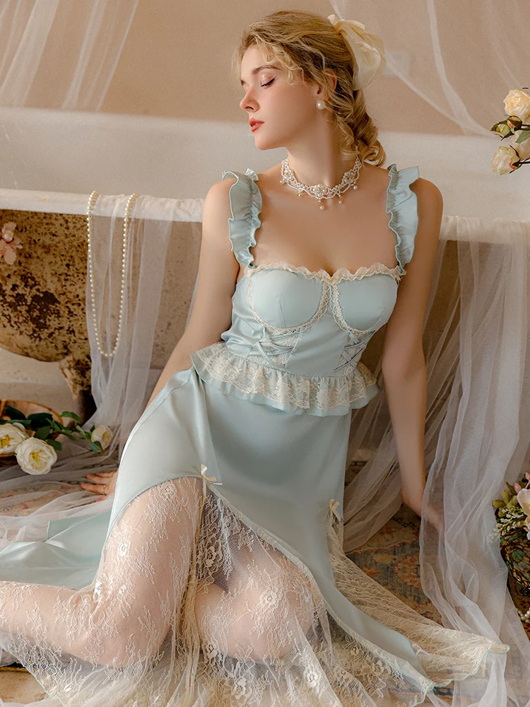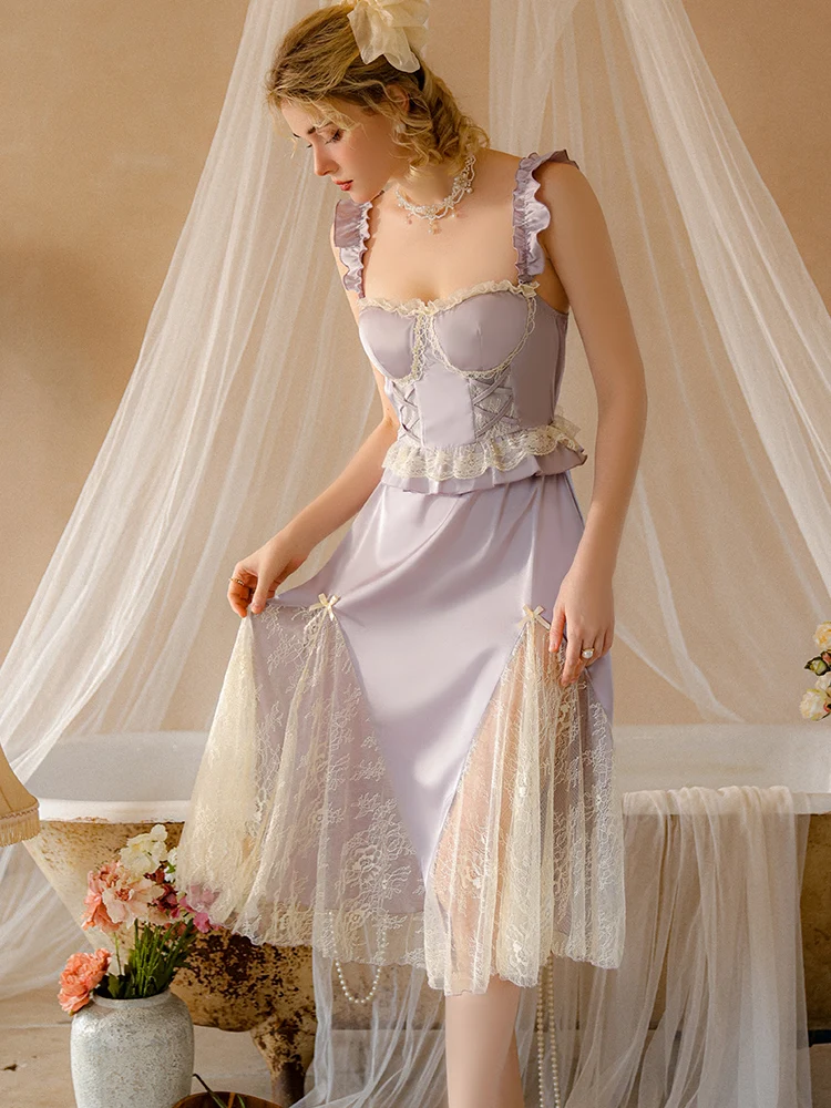 TAVIMART - Summer Sleeping Dress Women Nightgown Sexy Sleepwear Satin Lingerie V-neck Pajamas Sling Lace Nightdress Femme Nighty