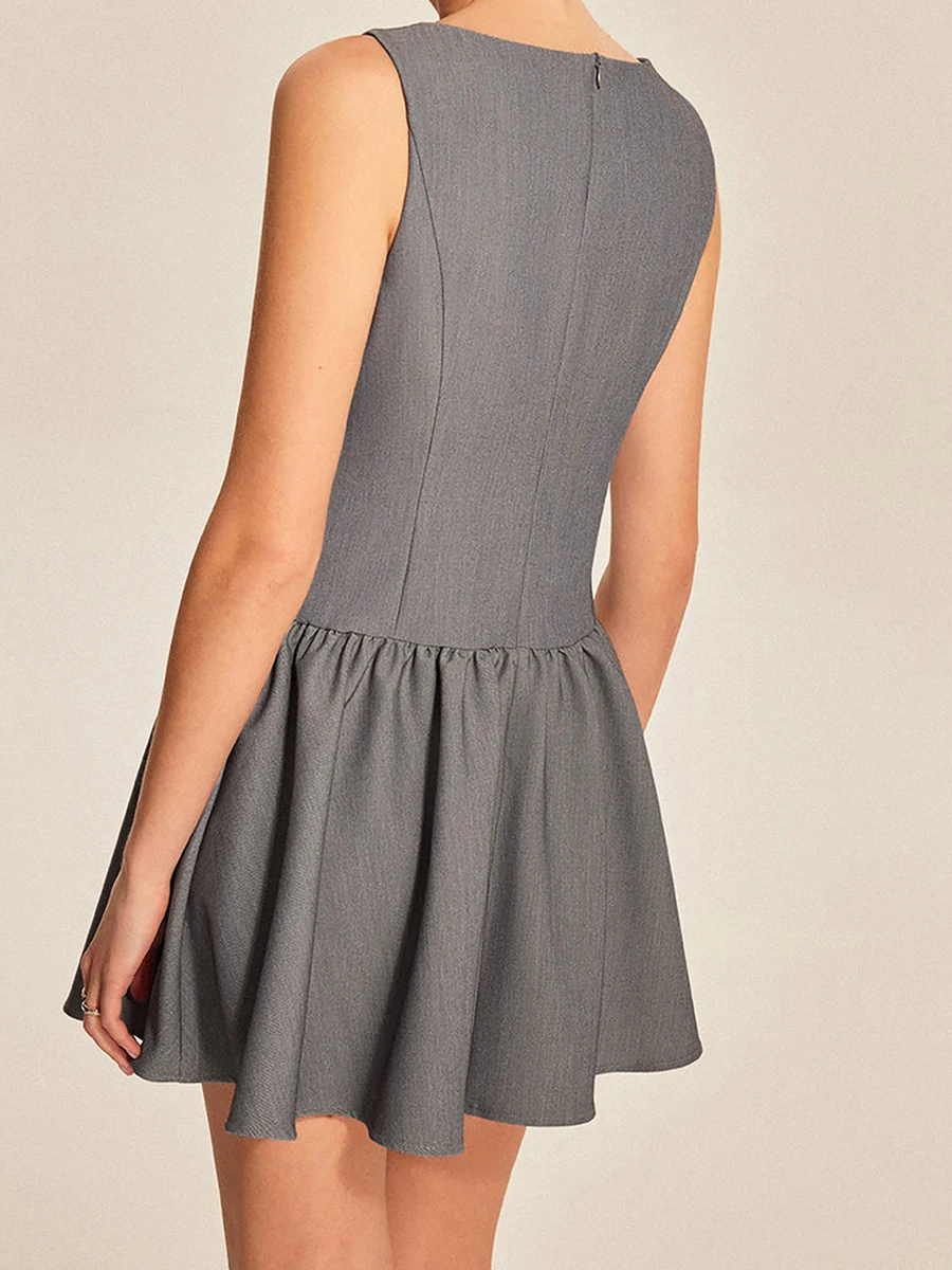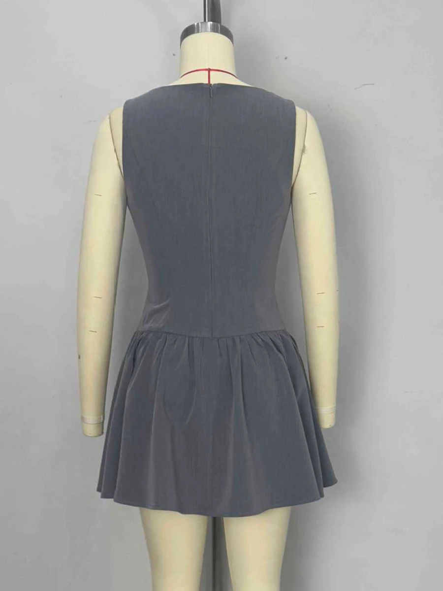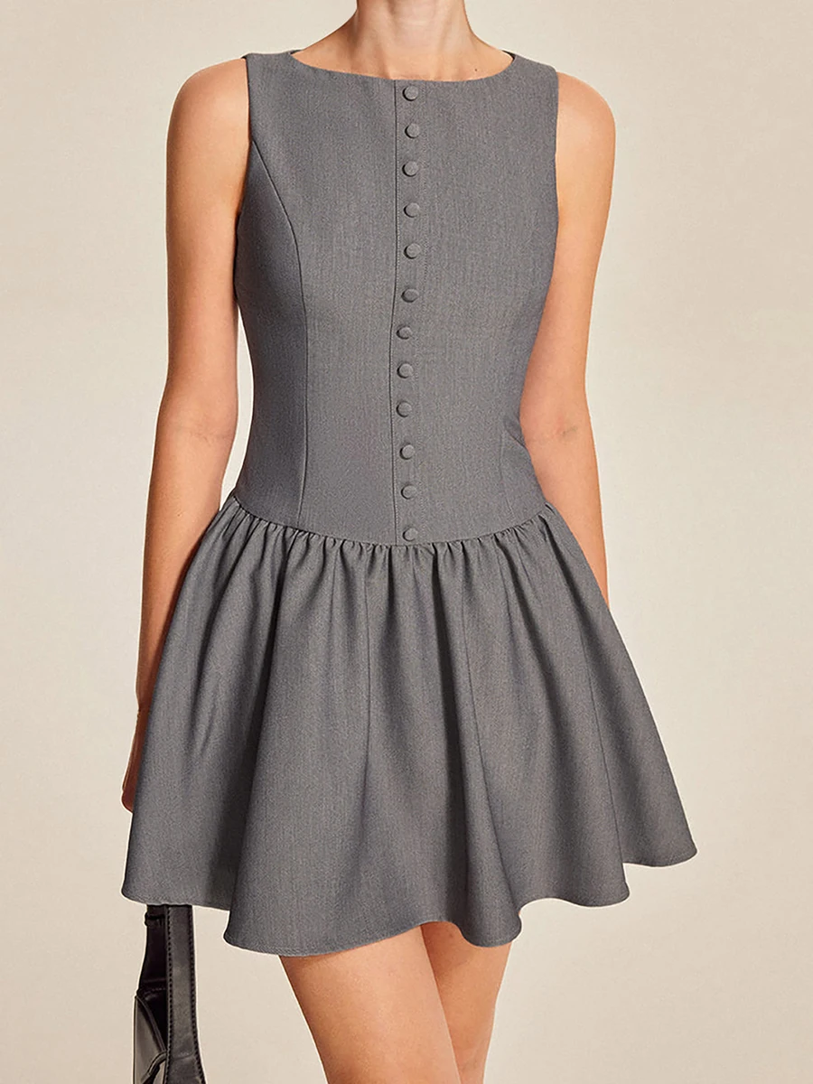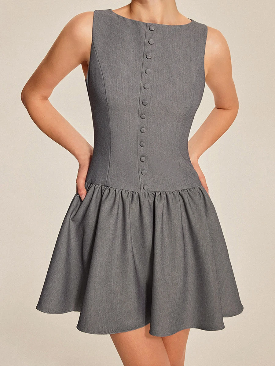 TAVIMART - Summer Solid Elegant Mini Dress Women New O Neck Single Breasted Sleeveless Short Dresses Simple Casual Fashion A-line Vestidos