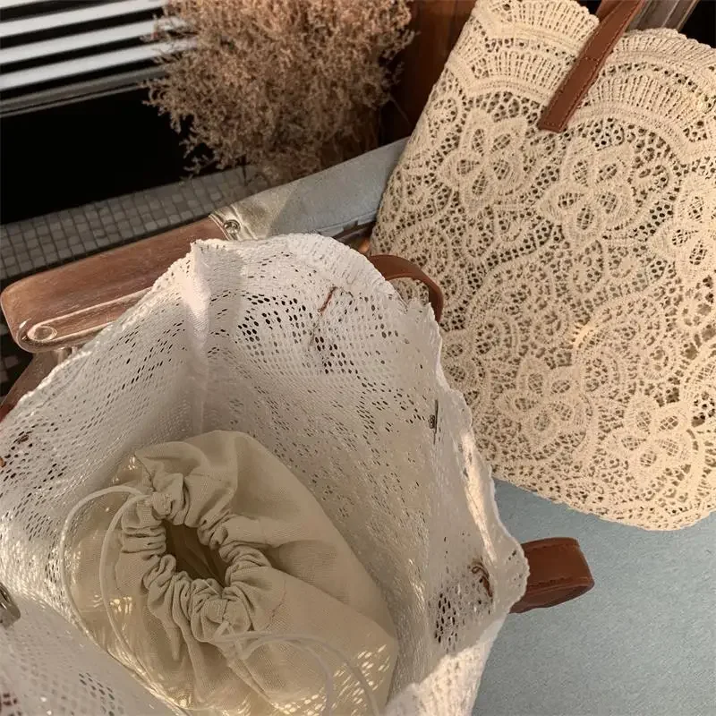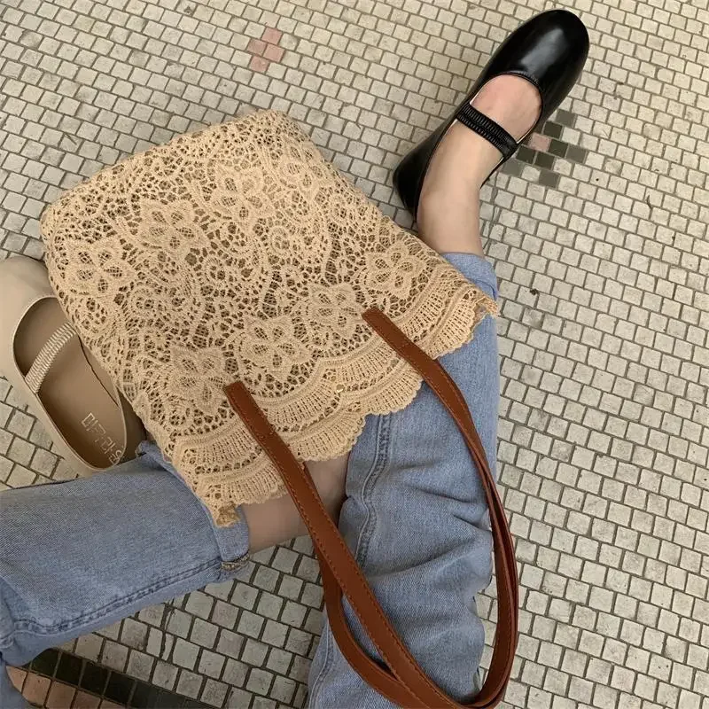 TAVIMART - Sweet Flower Hollow Out Knitted Lace Top-Handle Bags Vintage High-capacity Shoulder Bag Streetwear Women Shopping Handbags Y2k