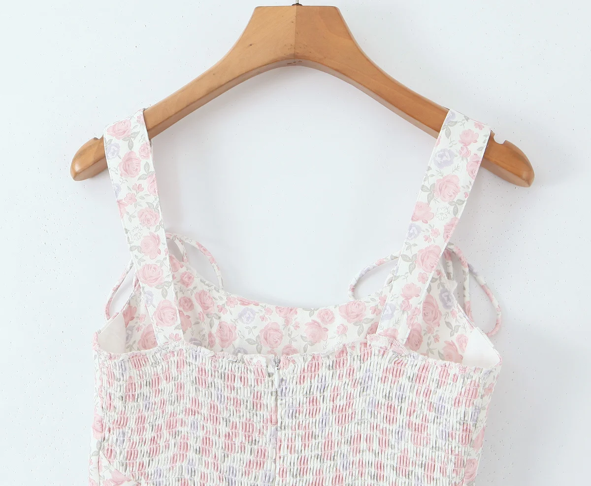 TAVIMART - Sweet Women Floral Print Sling Mini Dress Sexy Lace Spliced O Neck Sleeveless A-line Summer Dresse Holiday Robe 2025 Vestidos