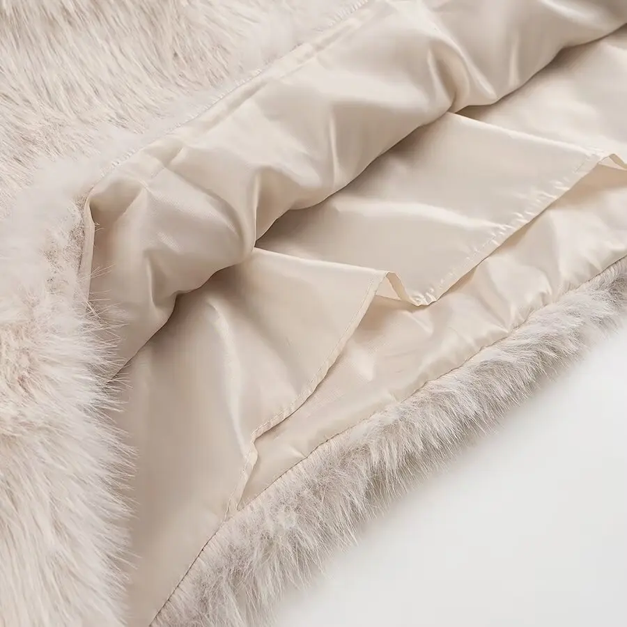 TAVIMART - Temperament White Women Imitation Fur Jacket Round Neck Short Full Sleeve Female Faux Fur Coat Instagram-Style Lady Eco Fur Coat