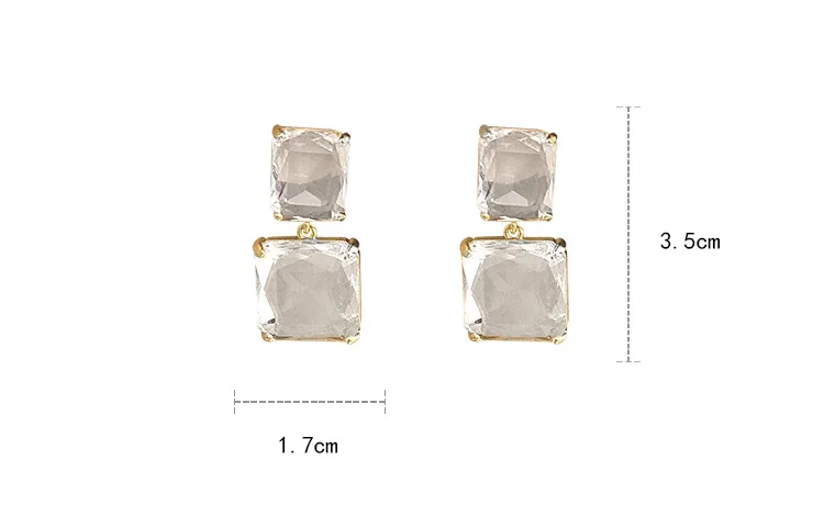 TAVIMART - Transparent geometric square crystal earrings silver needles European and American exaggerated design earrings fashion all-match