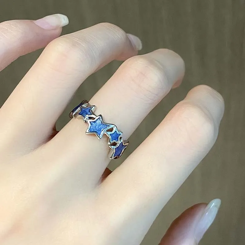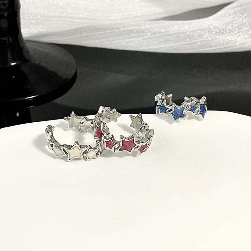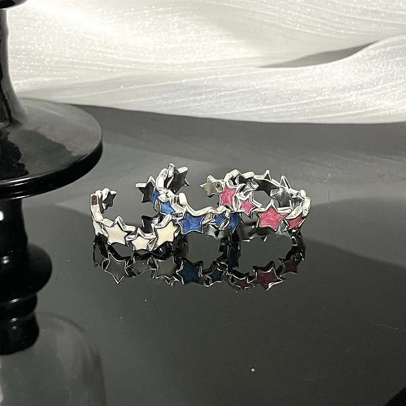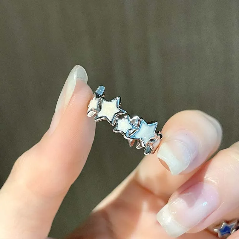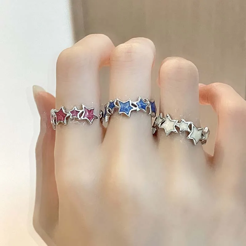 Tavimart Trend Sparkle Pink White Star Pentagram Ring for Women Sweet Cool Charm Aesthetic Accessories Korean Fashion Jewelry Gift