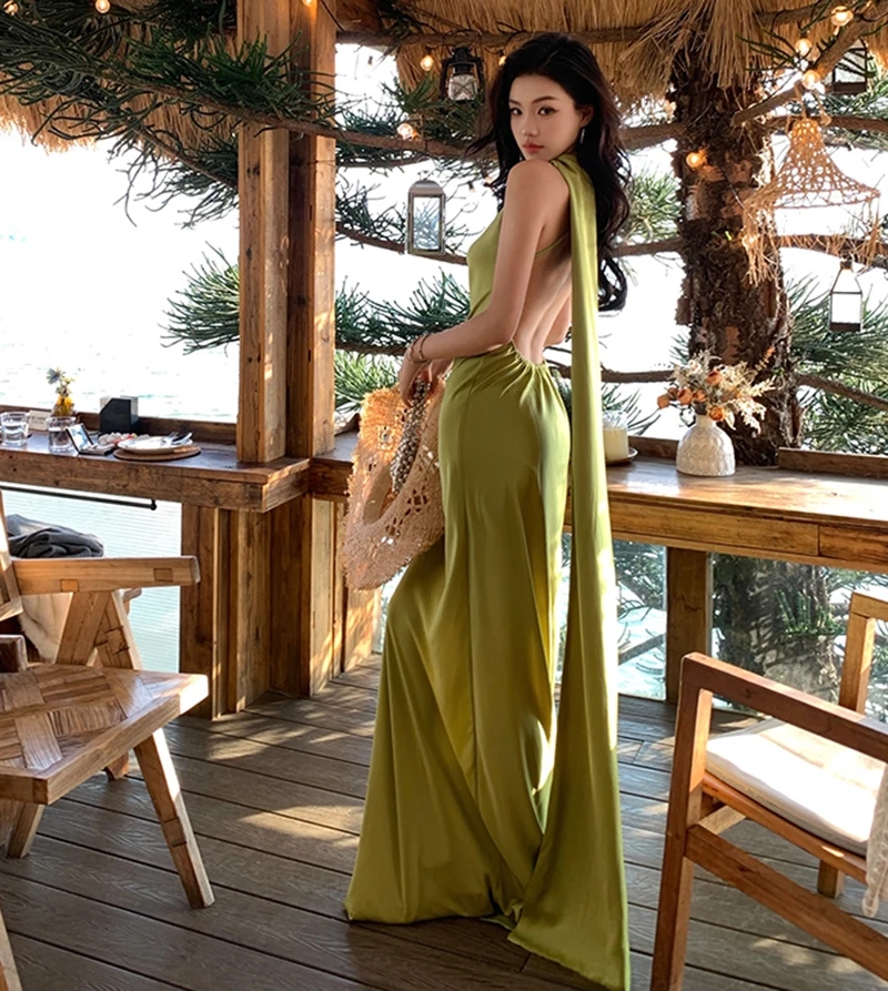 TAVIMART - Vintage Long Dress Women Elegant Vacation Beach Sexy Halter Backless Maxi Dresses Ladies Party Robe Summer Bodycon Vestidos New