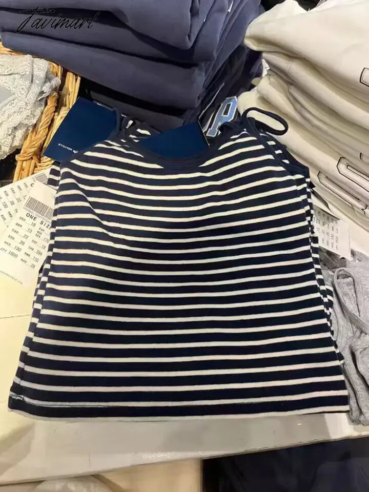 TAVIMART - Vintage Striped Tank Tops Women Clothes Summer Soft Cotton Sleeveless Slim Crop Top Female Cute Sweet Preppy Style Camisole Y2k
