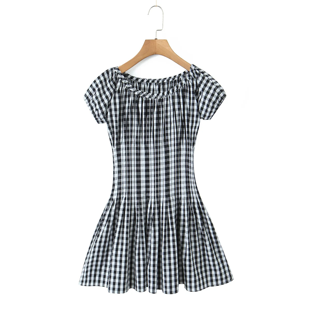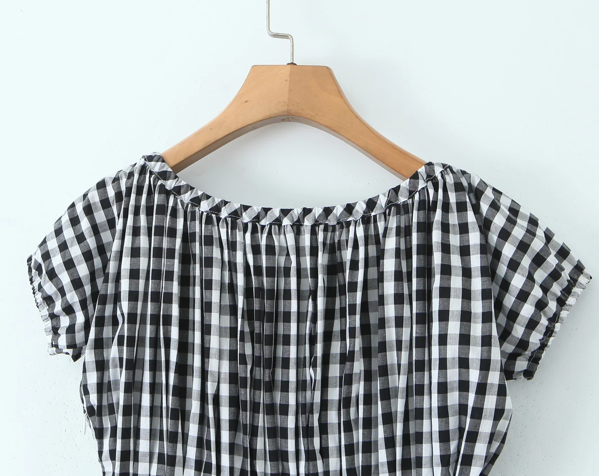TAVIMART - Vintage Women Black White Plaid Dresses Short Sleeve O Neck Slim Waist A-line Mini Casual Summer Dress