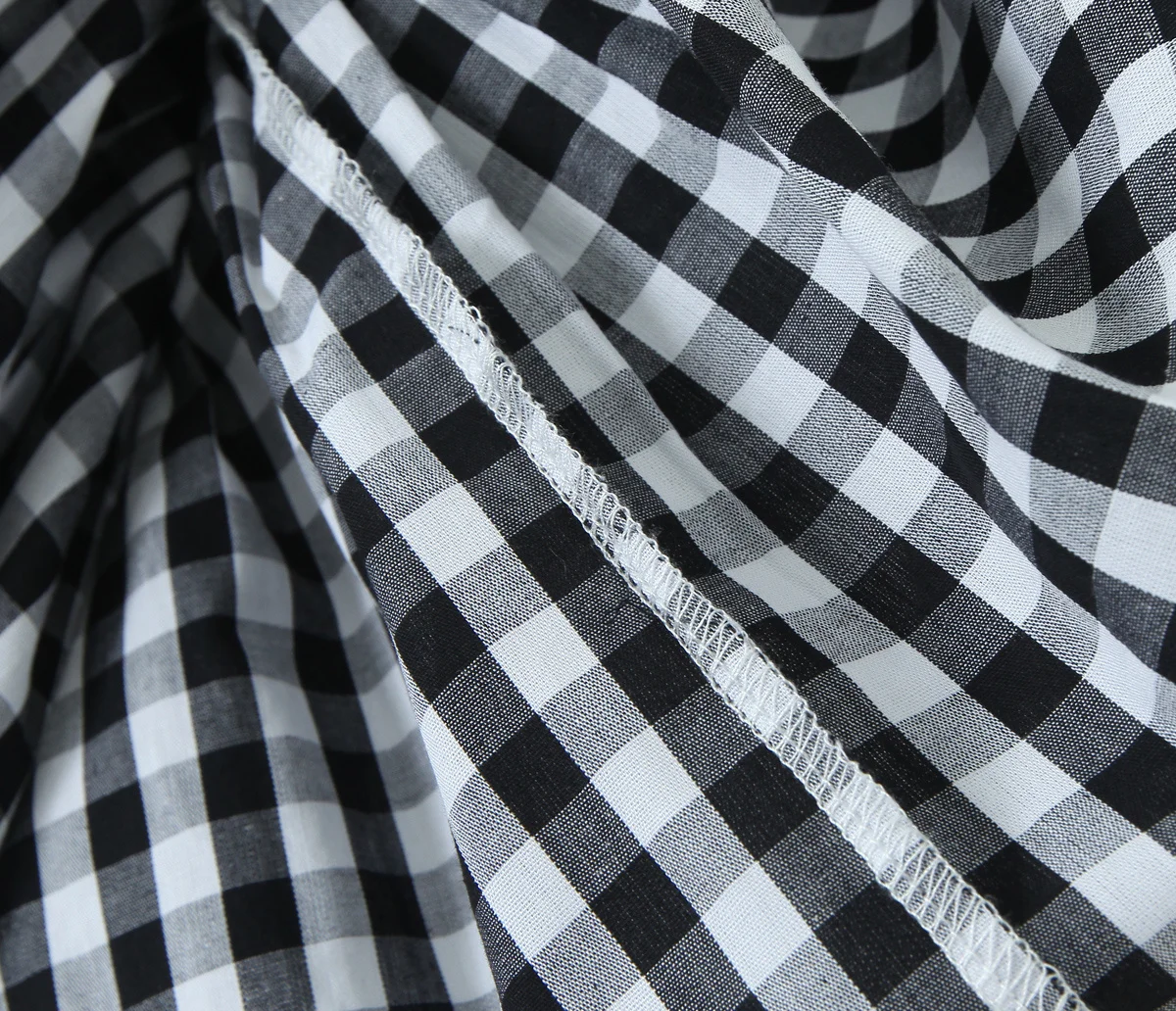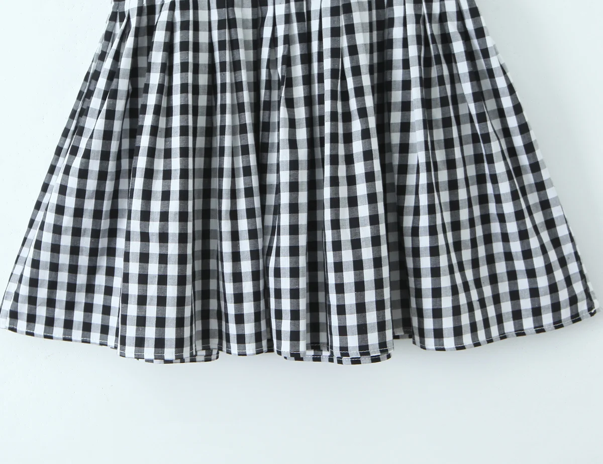 Vintage Women Black White Plaid Dresses