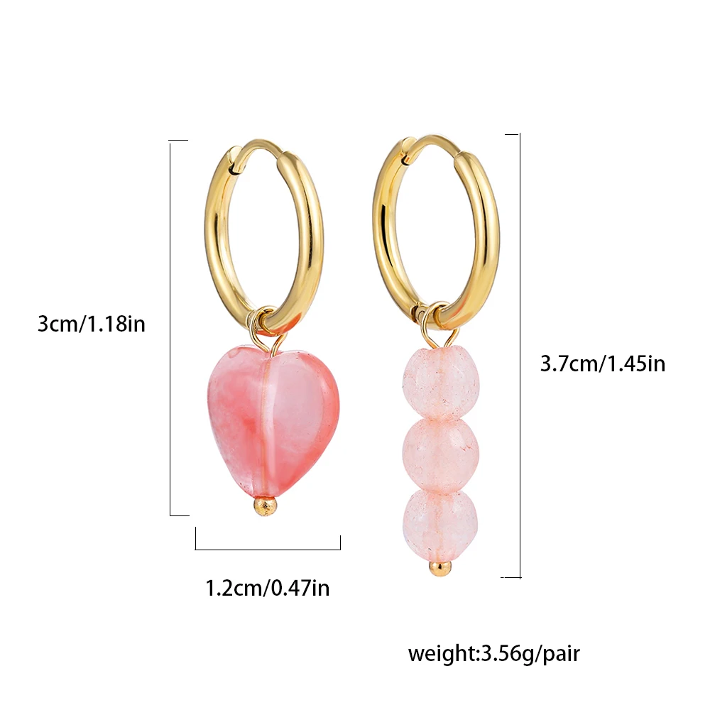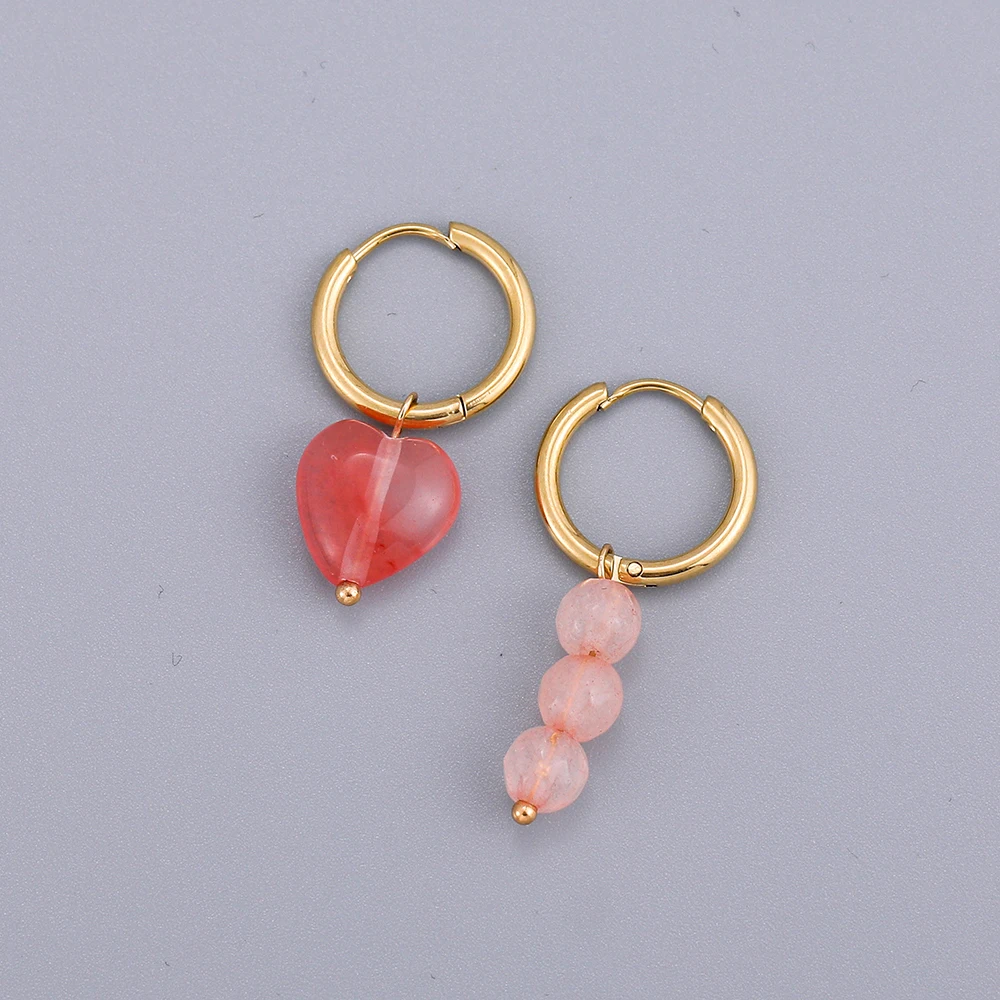 TAVIMART - Watermelon Red Stone Heart Donuts Beads Pendants Stainless Steel Hoops Circle Earrings for Women Natural Stone Earring