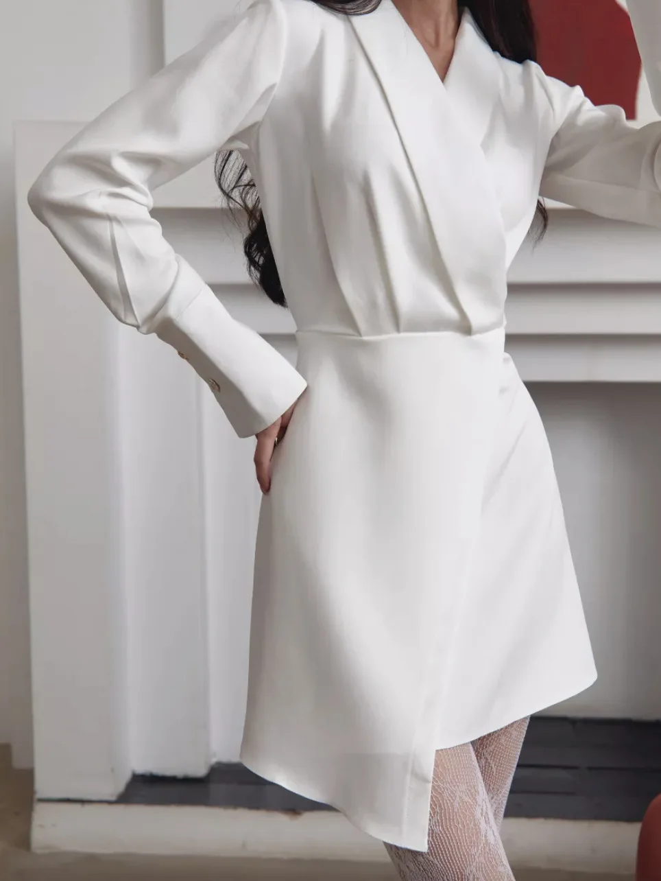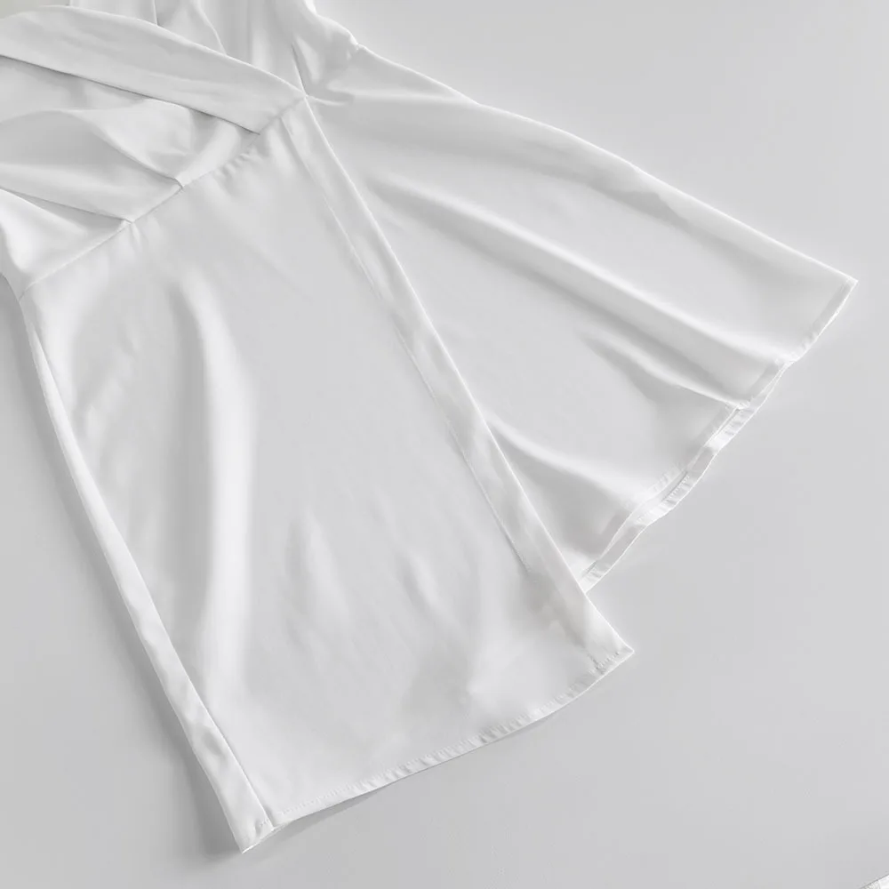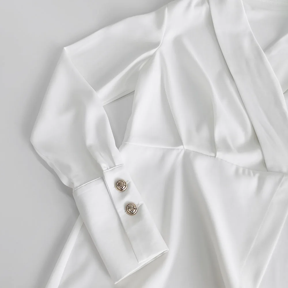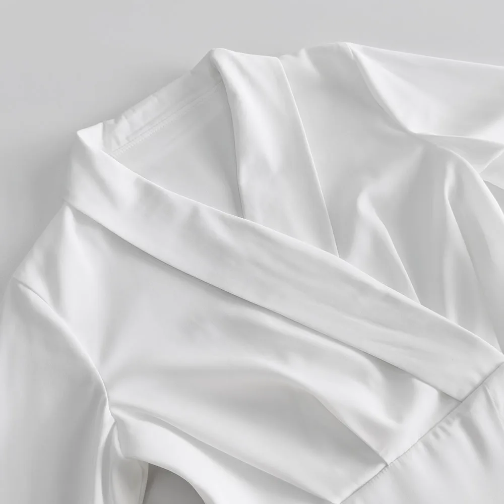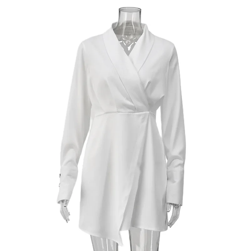 TAVIMART - White Irregular Mini Dress Women Spring V Neck Long Sleeve A-line Suit Vestidos Simple Casual Fashion Short Dresses 2025 New