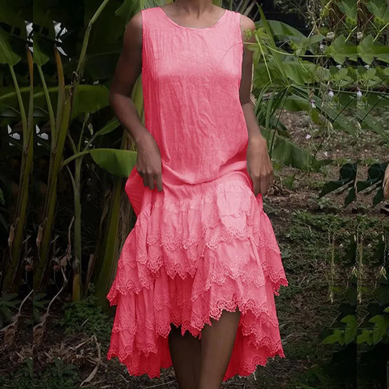 TAVIMART - Women Elegant Solid Crew Neck Layered Tank Long Dress Casual Lace Slim Party Dress Temperament 2024 Sleeveless Jacquard Dresses