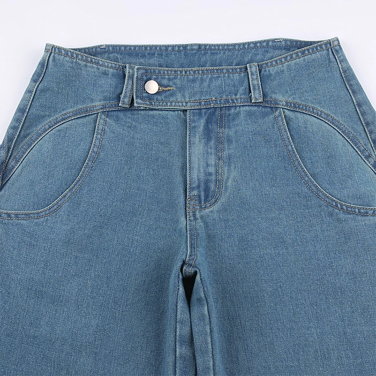 Tavimart Women Light Blue Denim Jeans Casual Straight Loose Long Trousers pantalones mujer verano Autumn High Waist pantalones