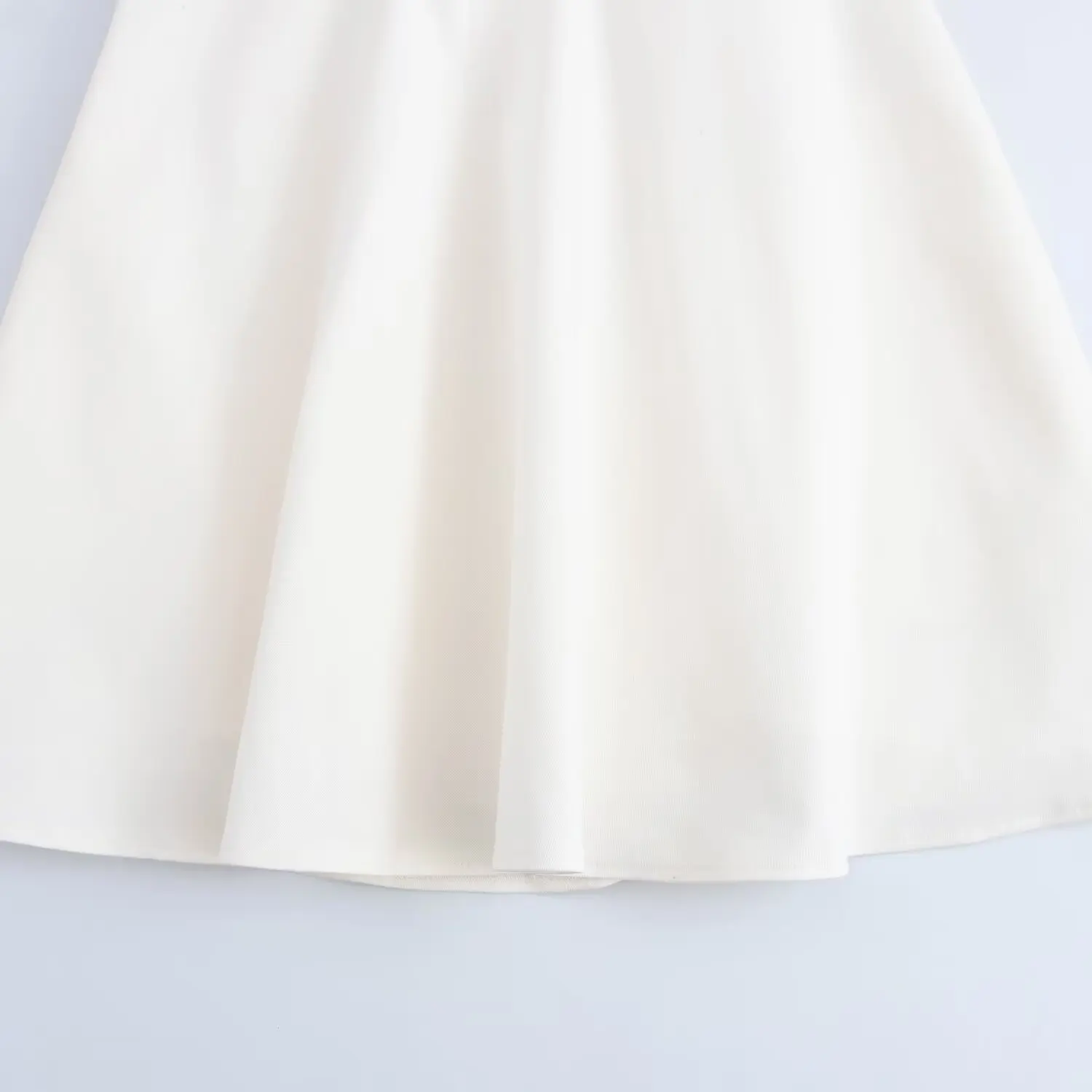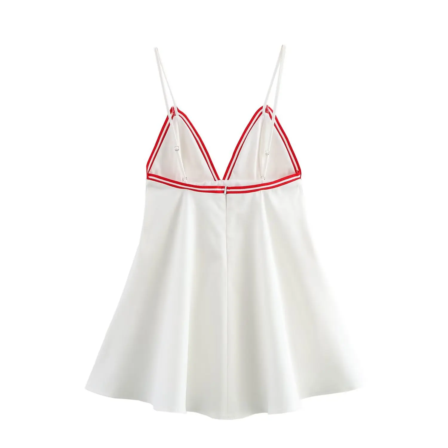 TAVIMART - Women New Sweet Fashion Back Zipper Short Sling Dress Female Spring Casual Fold V-Neck Sleeveless Backless Solid Dress