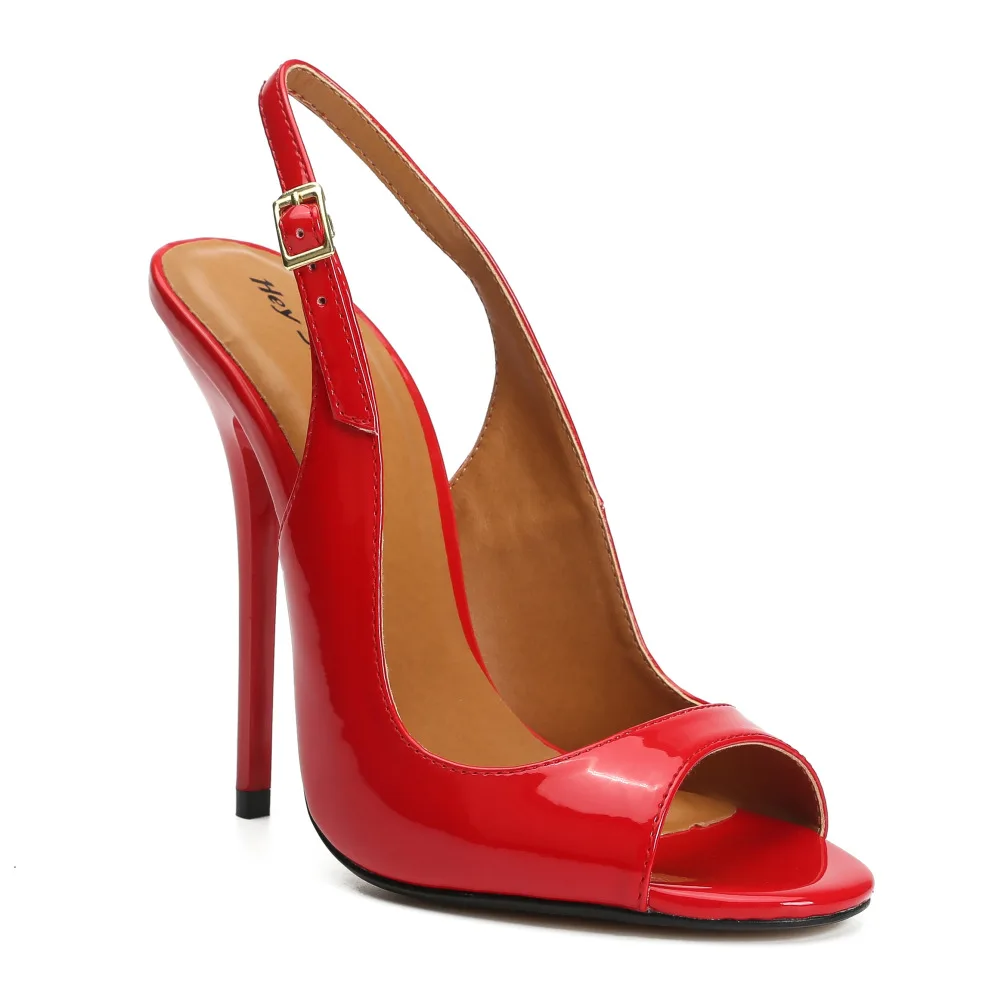 TAVIMART - Women Sandals Patent Leather Buckle Strap 13CM Thin High Heels Peep Toe Classics Fashion Party Shoes Photography Pumps