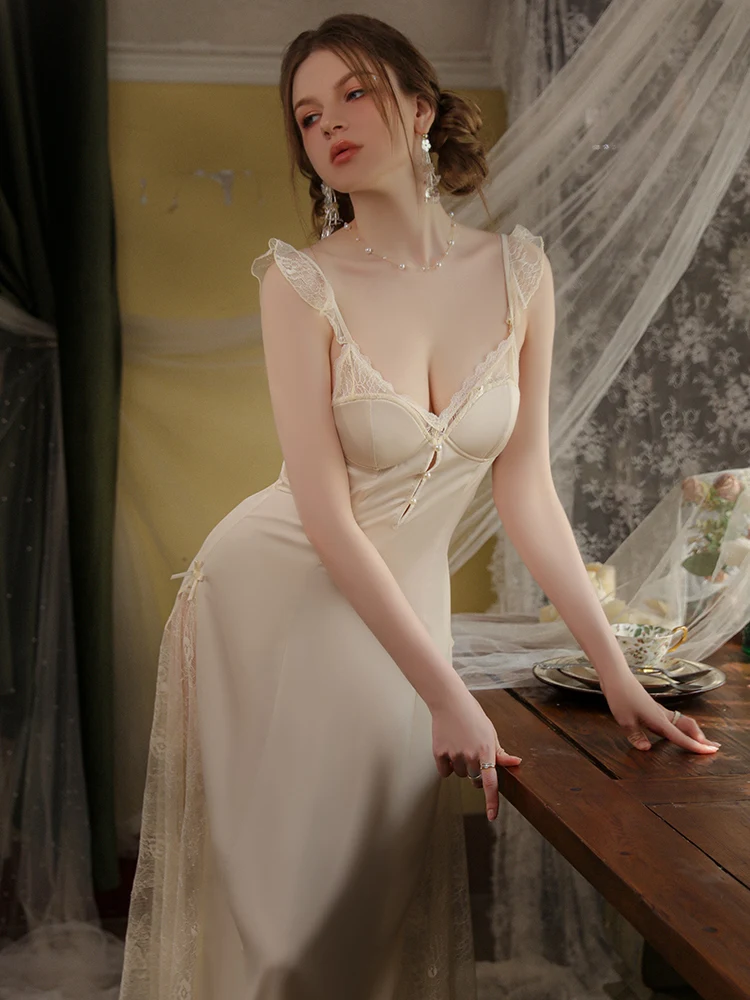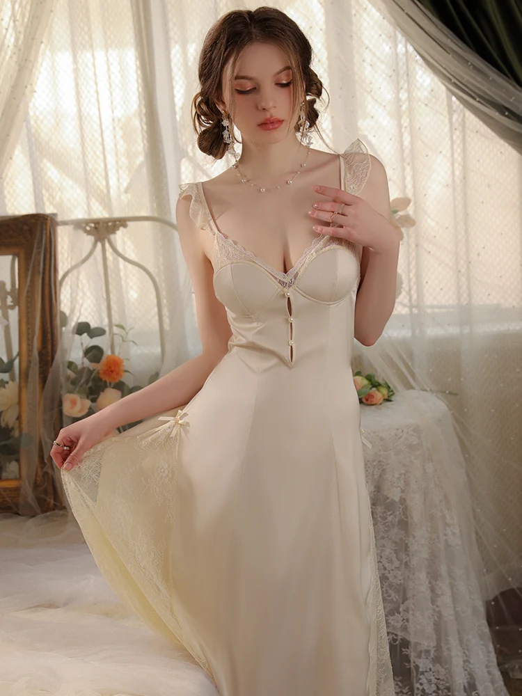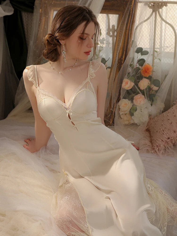 TAVIMART - Women Sexy Nightgowns Nightwear Lace Silk Pajamas Sleepwear Night Dress Ladies Lingerie Homewear Satin Long Sleepdress