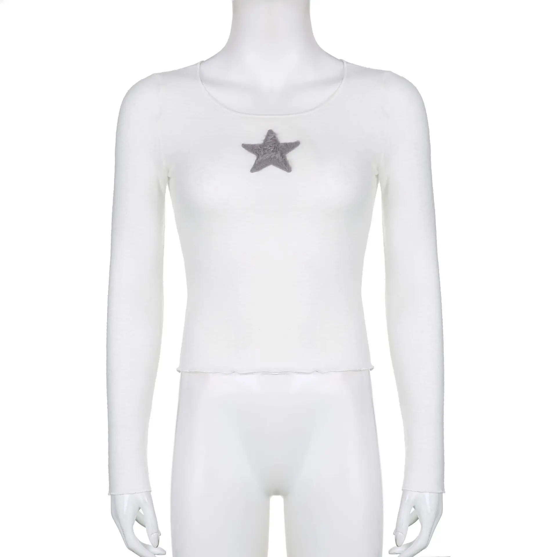 Tavimart Women Star Pattern Tops Summer Harajuku Long Sleeve T-Shirt Casual Korean Fashion Teen Teens Female Goth Sexy Slim Printed Tops