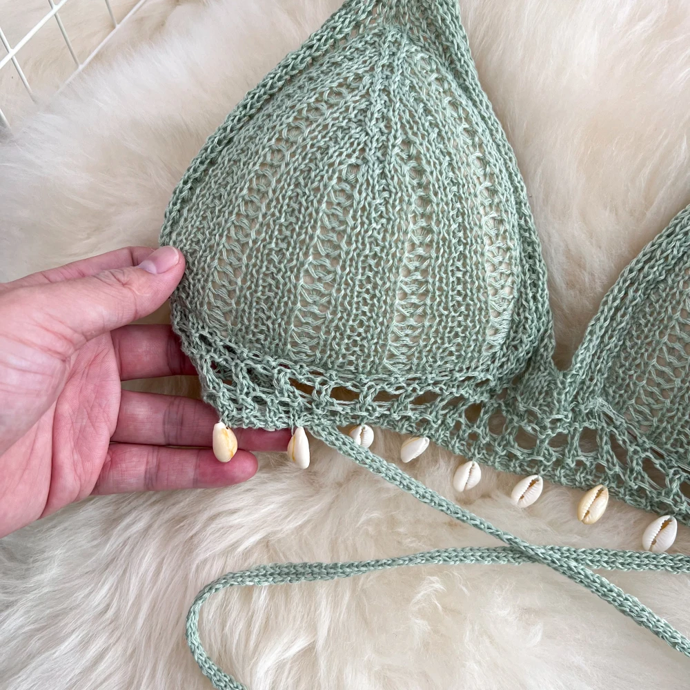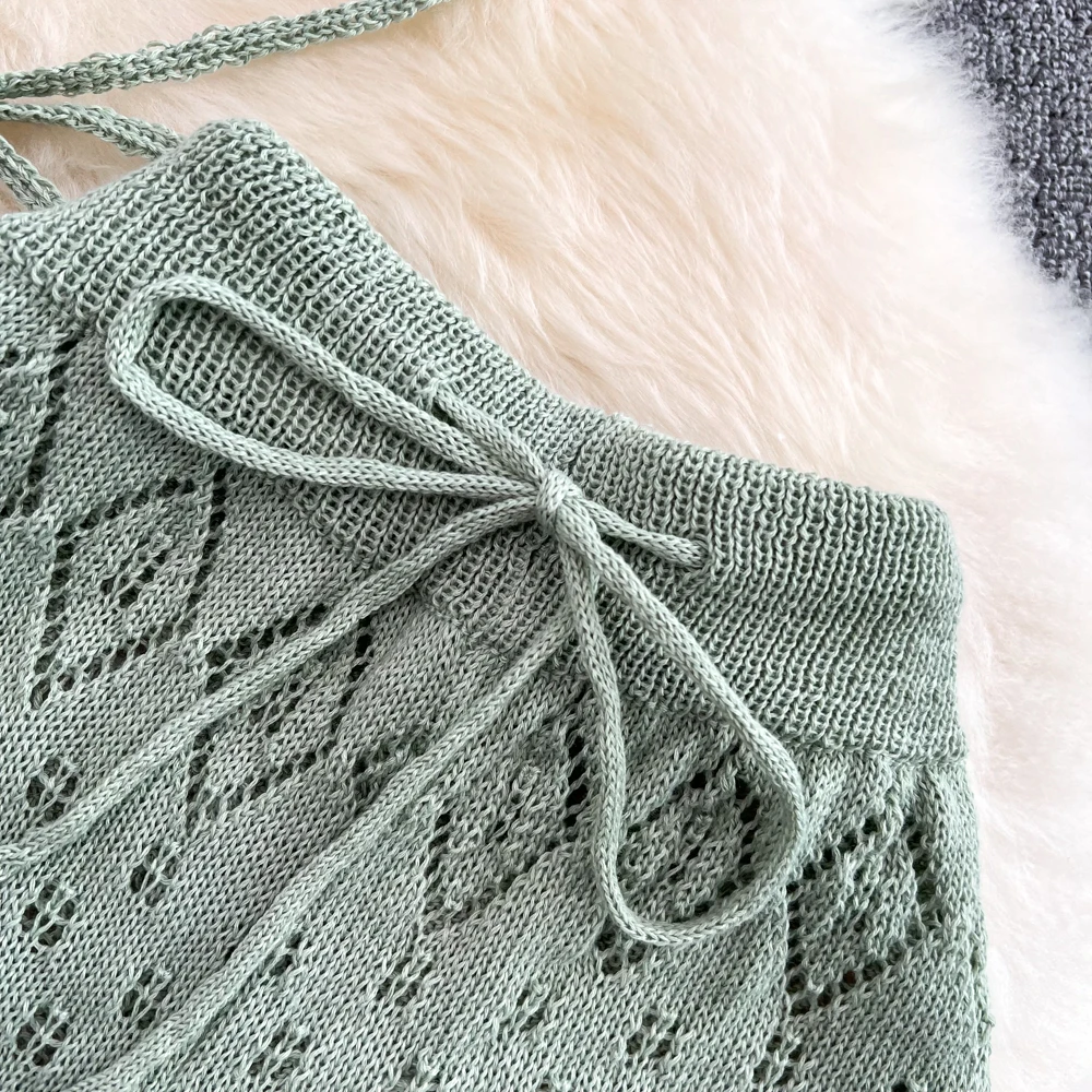 Tavimart Women Summer Knitted Pants Set Halter Short Tops & Hollow Wide Leg Long Pants Sets Beach Sexy Backless Two Piece Suits