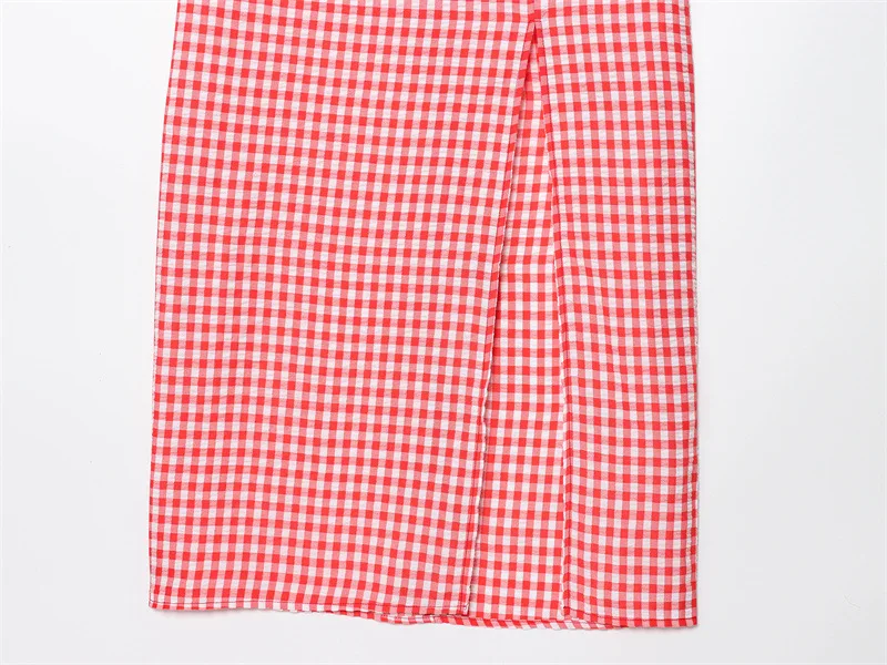 TAVIMART - Women's clothing new fashion bow decoration slim fit plaid slit suspender midi skirt retro sleeveless women's dress