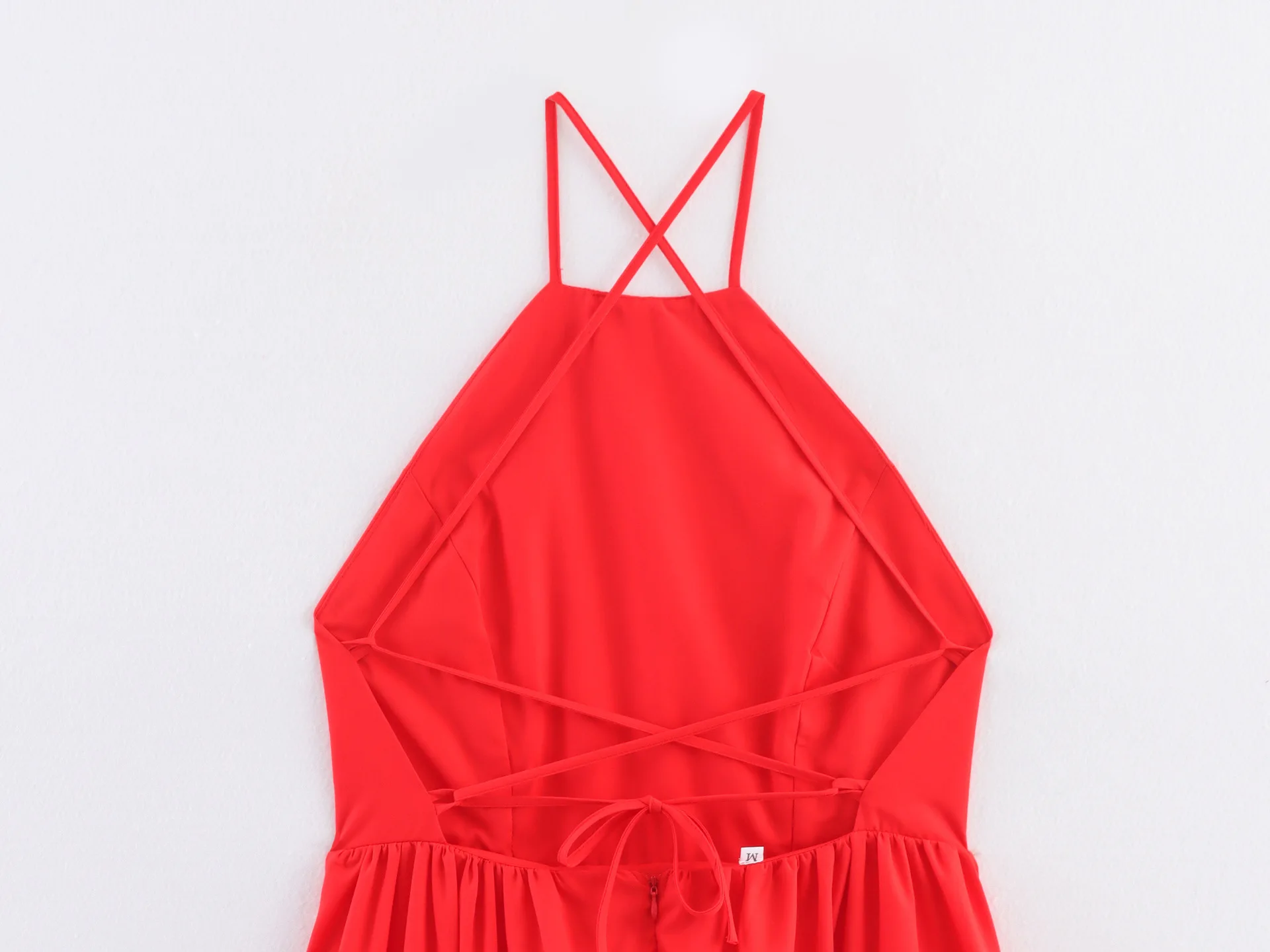 TAVIMART - women's dress sleeveless back cross lace design long dress sexy backless midi dress women's holiday casual dress