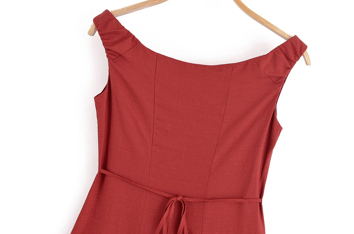TAVIMART - Women's Fashion Elegant Linen Dress Casual Sleeveless Single-Breasted Long Dress 2025 Summer New Temperament Commuter Dress