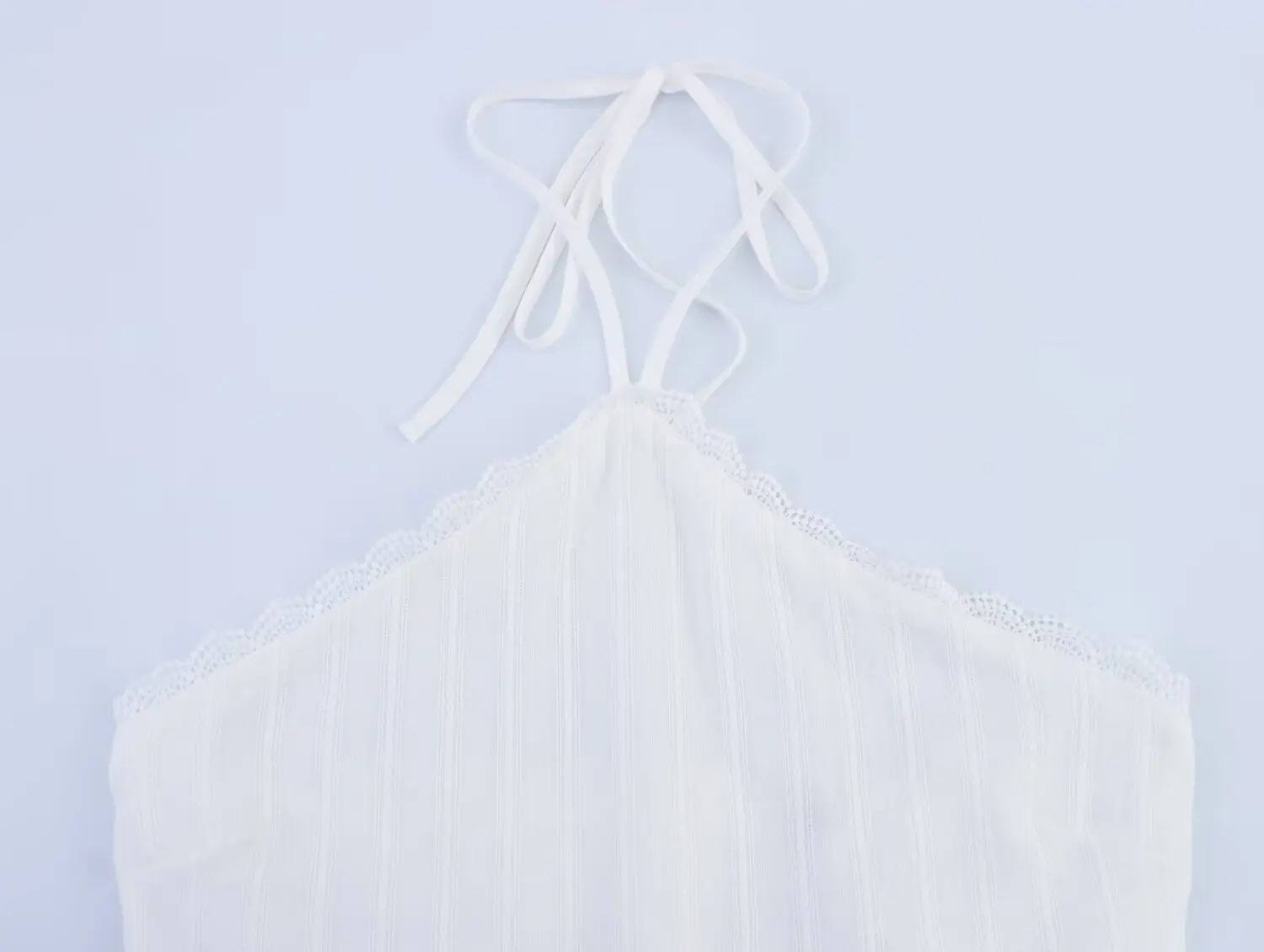 TAVIMART - Women's Holiday Party Halter Neck Zipper Short Dress Female Summer Backless Layered Design Chic Sexy Mini Dress