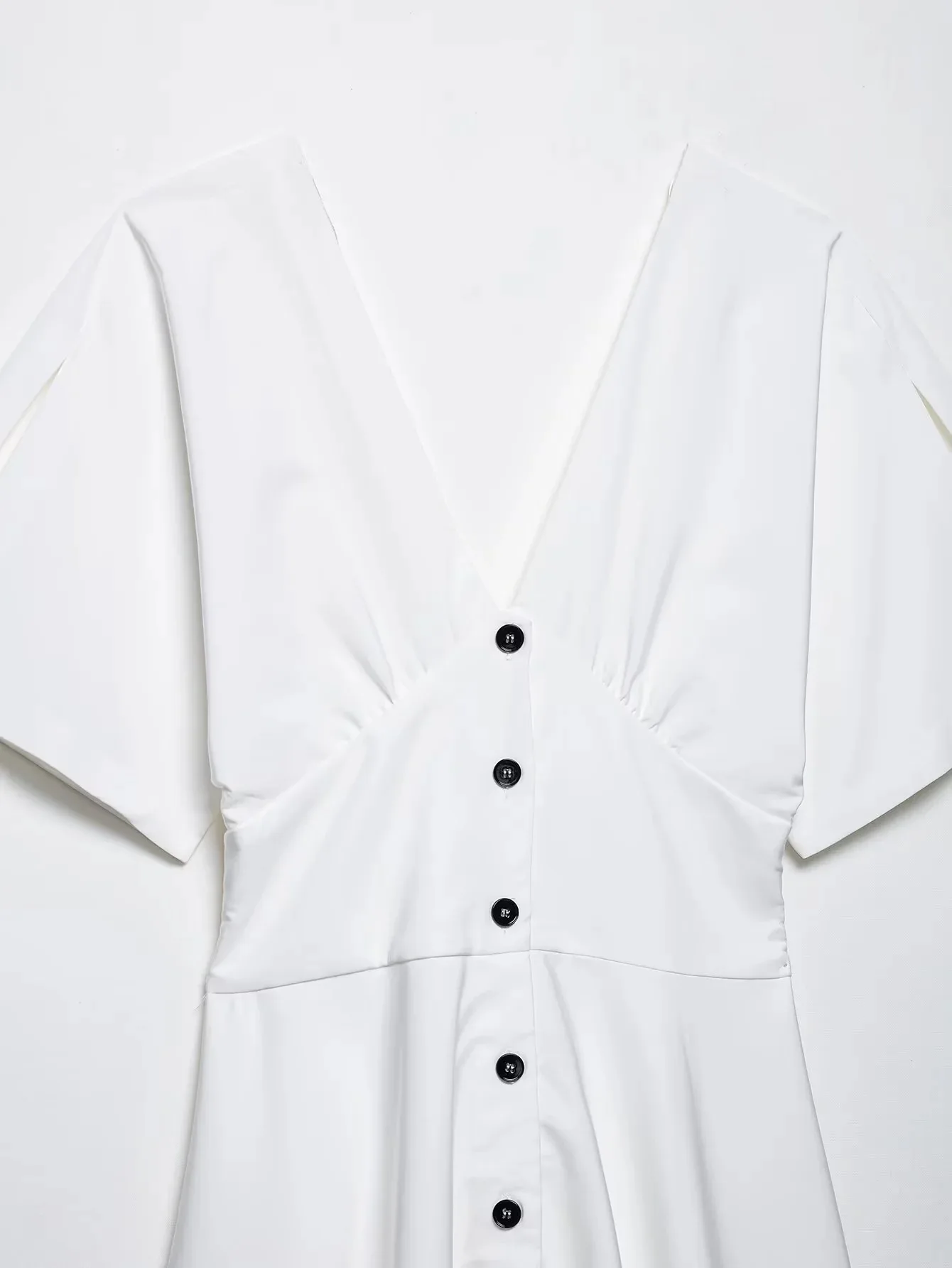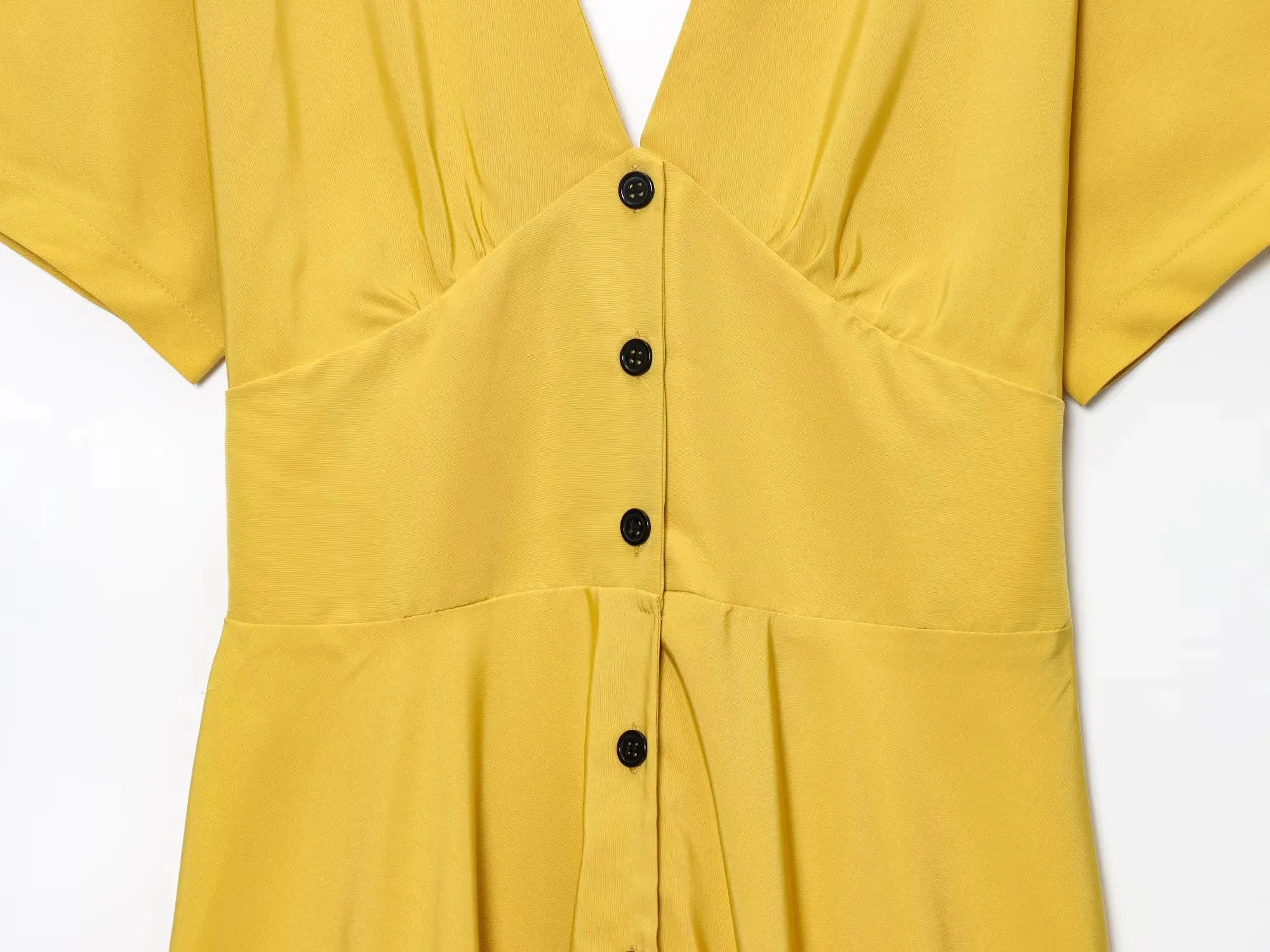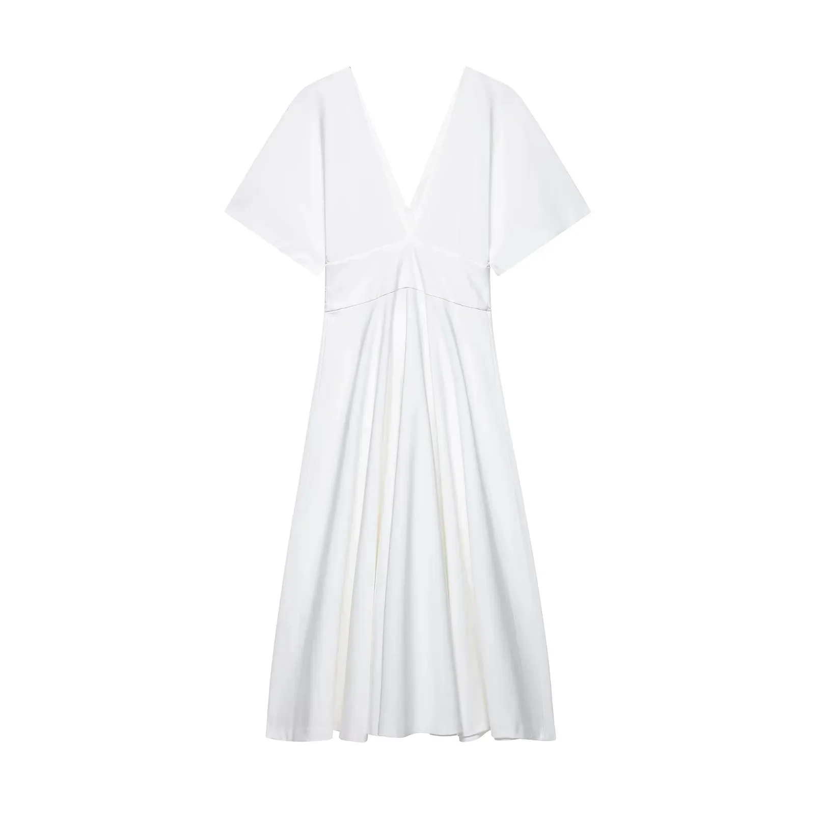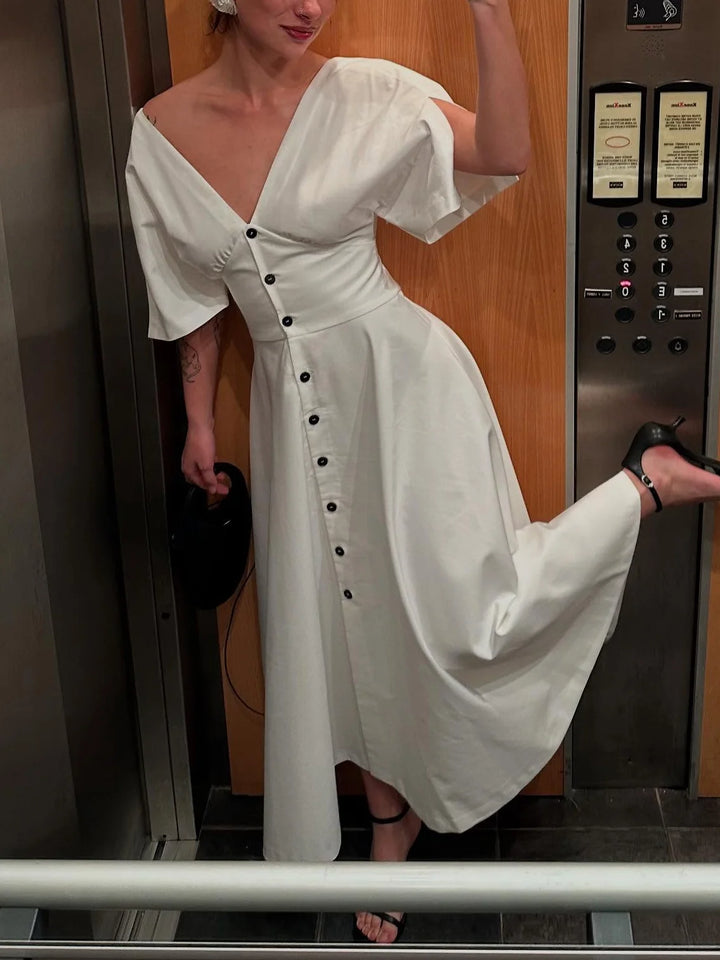 TAVIMART - Women's mid-length elegant dress button V-neck backless pleated dress new summer fashion holiday date casual dress