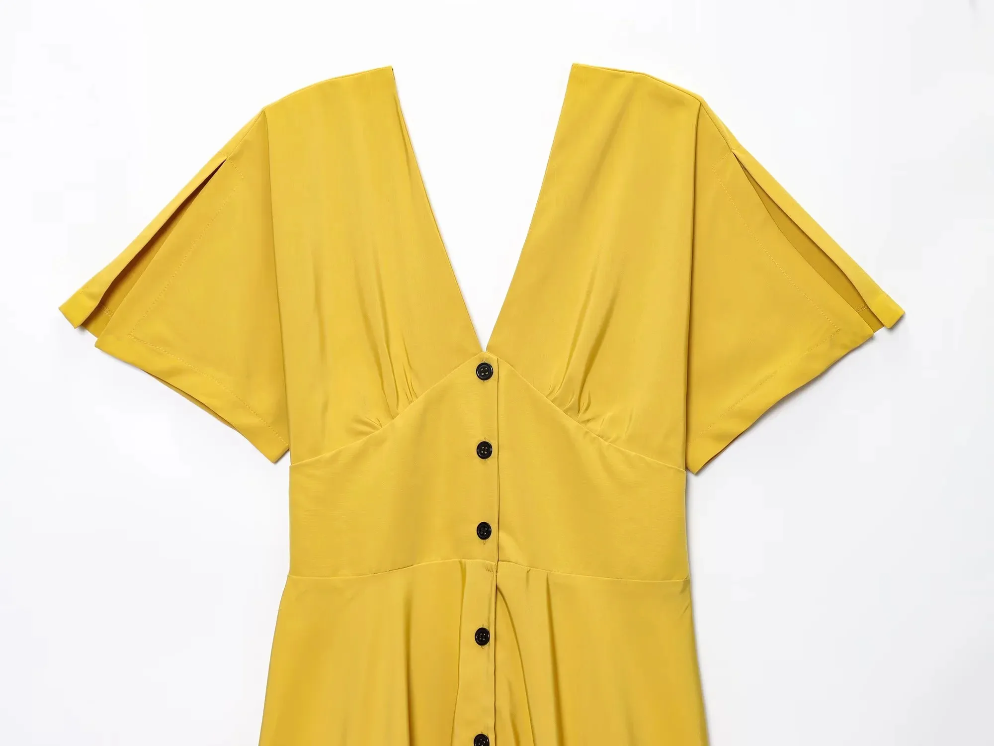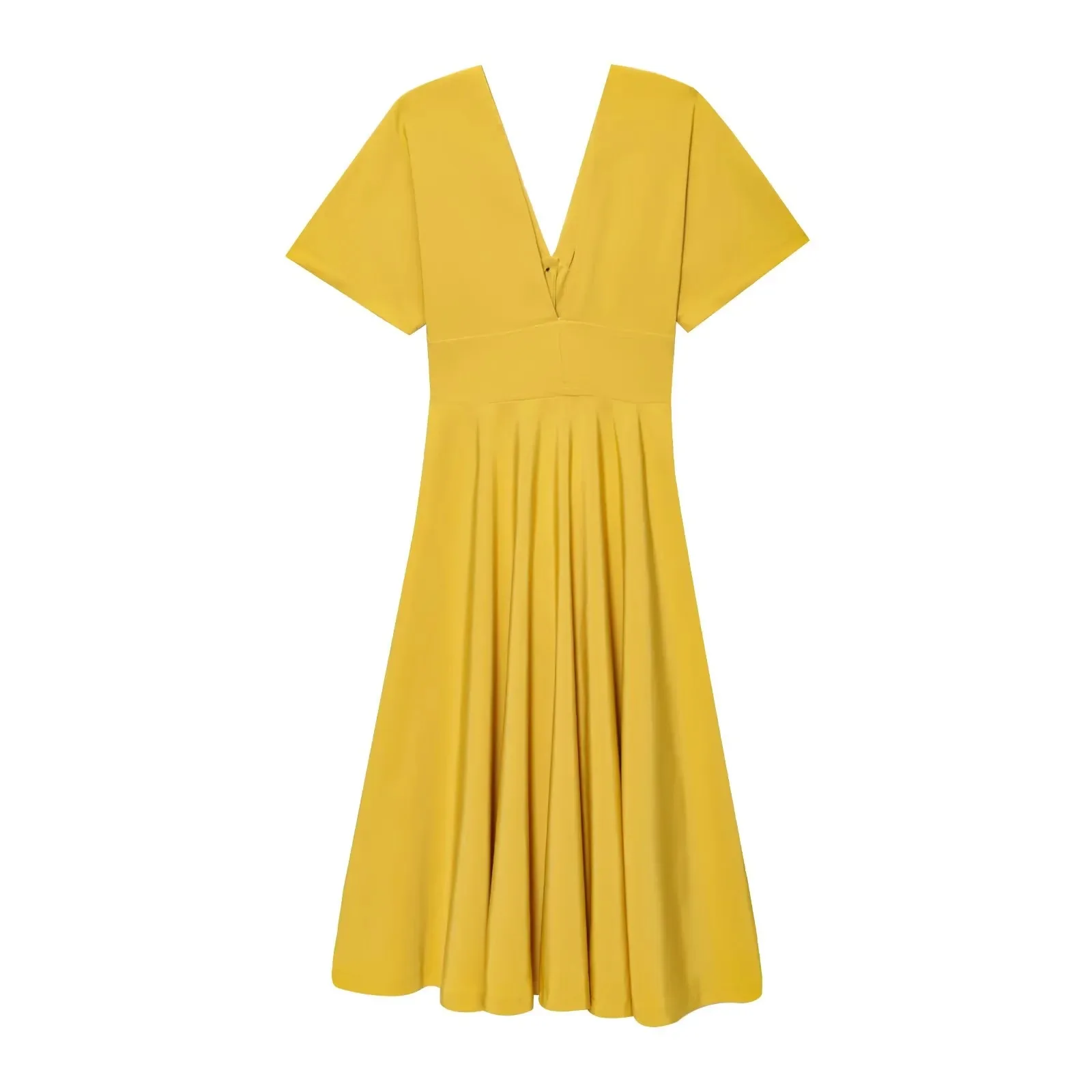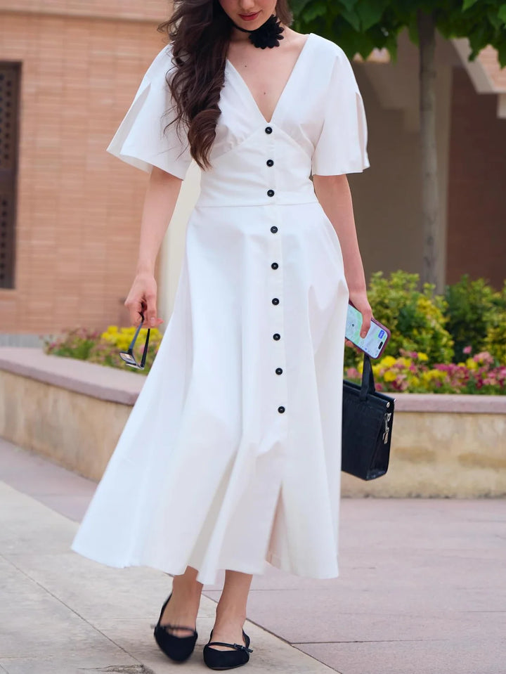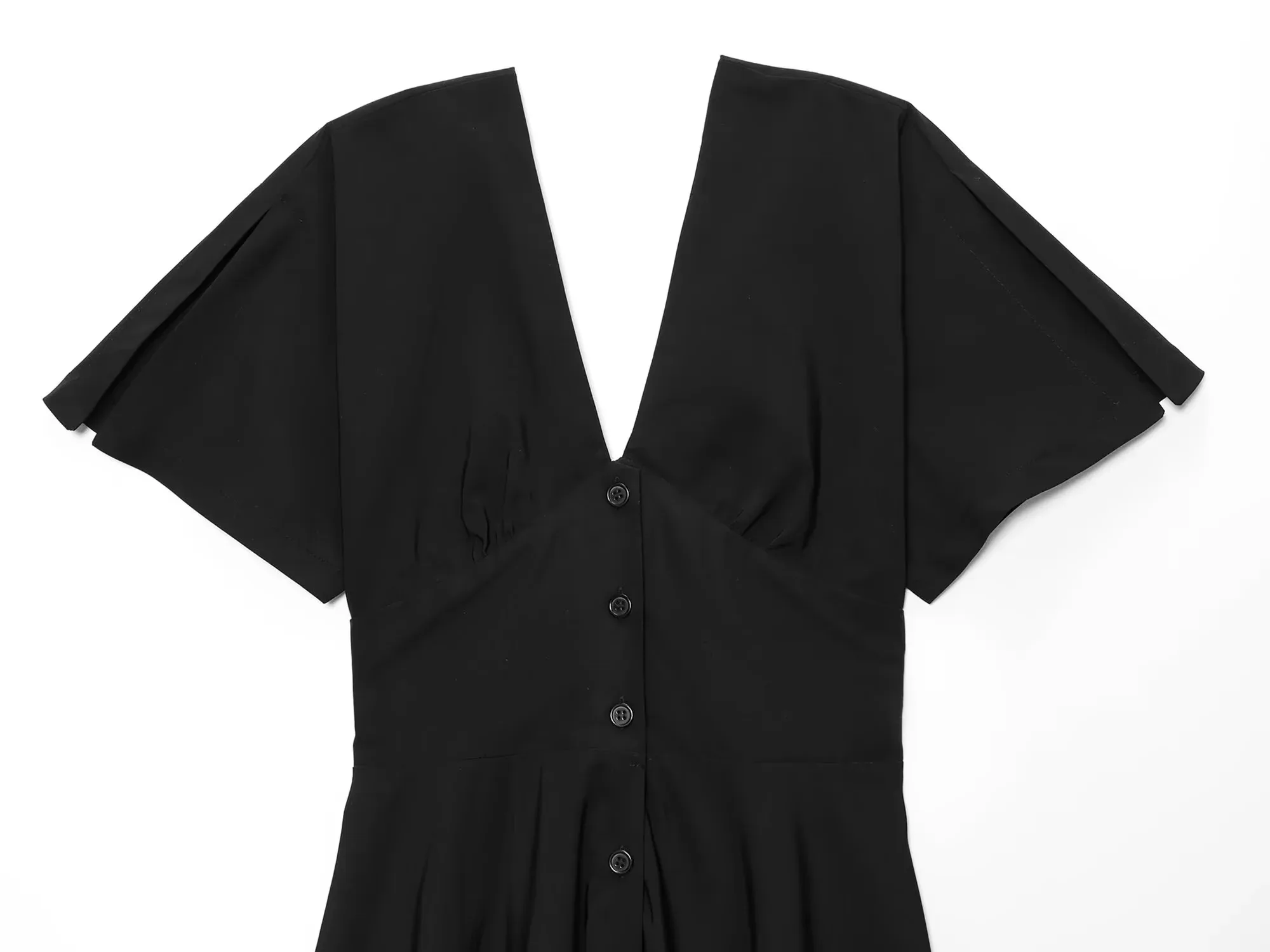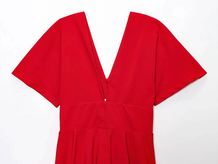 TAVIMART - Women's mid-length elegant dress button V-neck backless pleated dress new summer fashion holiday date casual dress