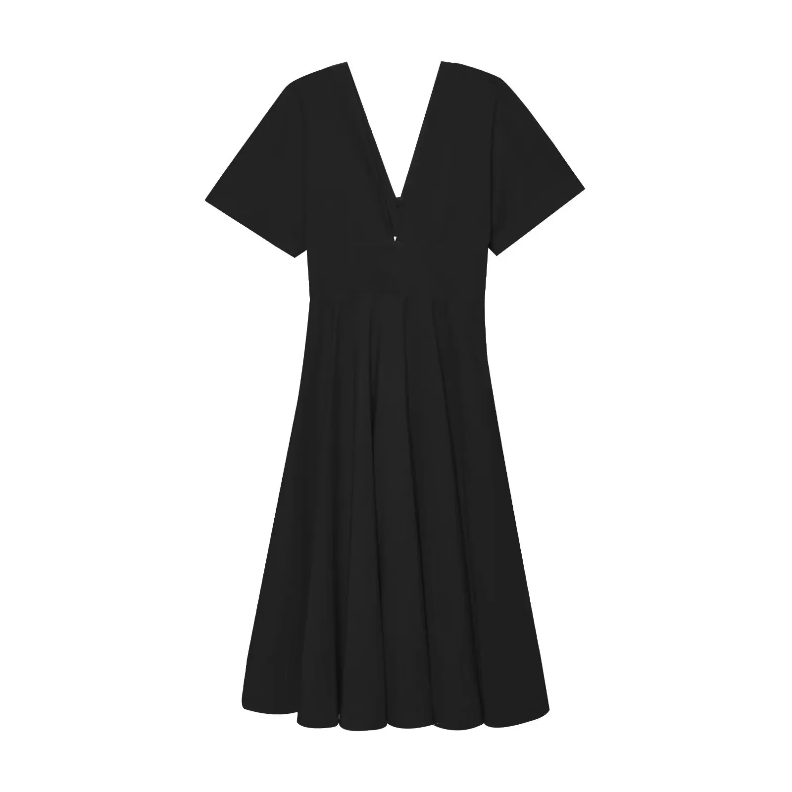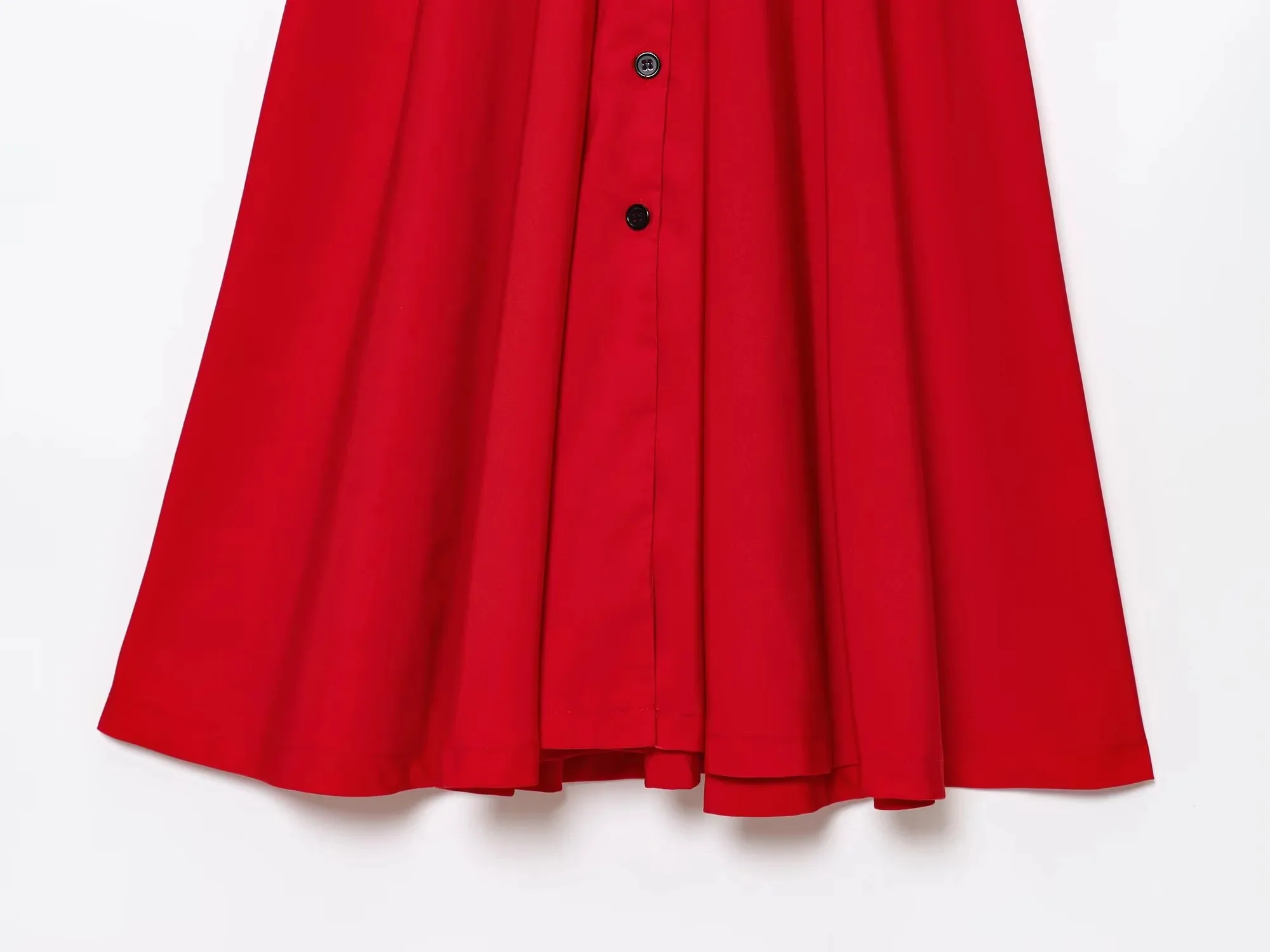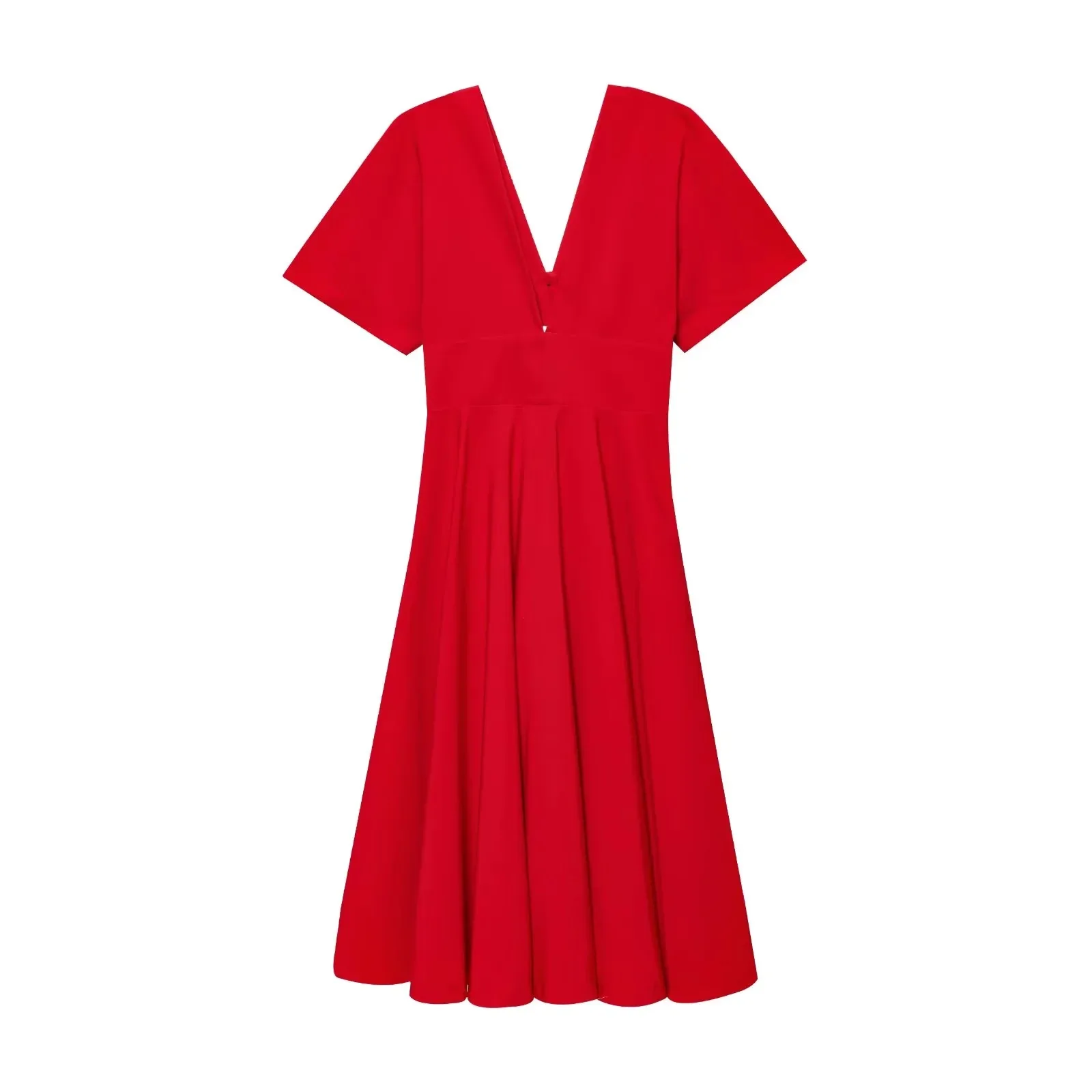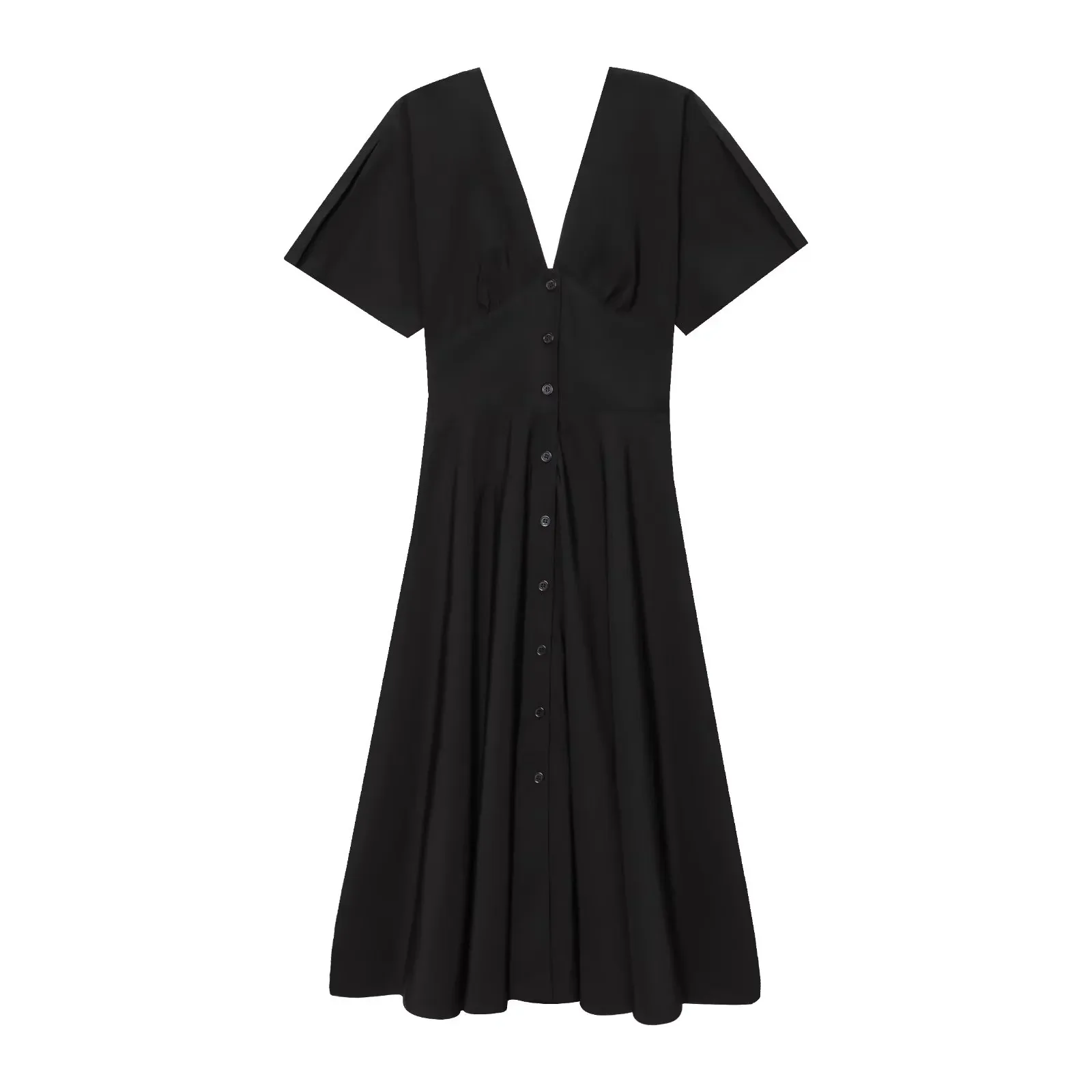 TAVIMART - Women's mid-length elegant dress button V-neck backless pleated dress new summer fashion holiday date casual dress