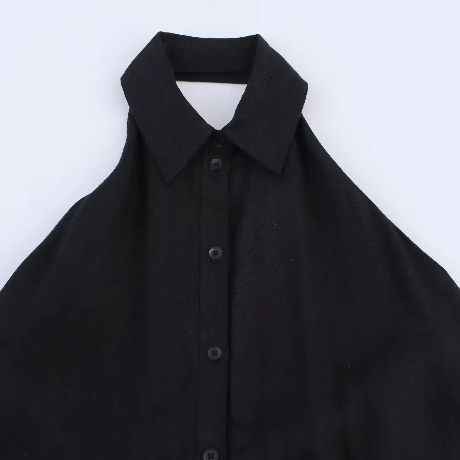 TAVIMART - Women's new summer linen black halter neck casual loose robe dress sexy strapless backless design personality fashion