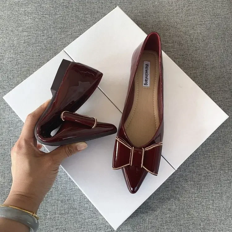 TAVIMART - Women's Shoes Flat With Bow Flats Pointed Toe Ladies Footwear Low Heel Elegant Fashion Leather Casual Spring Dress Trend Slip On