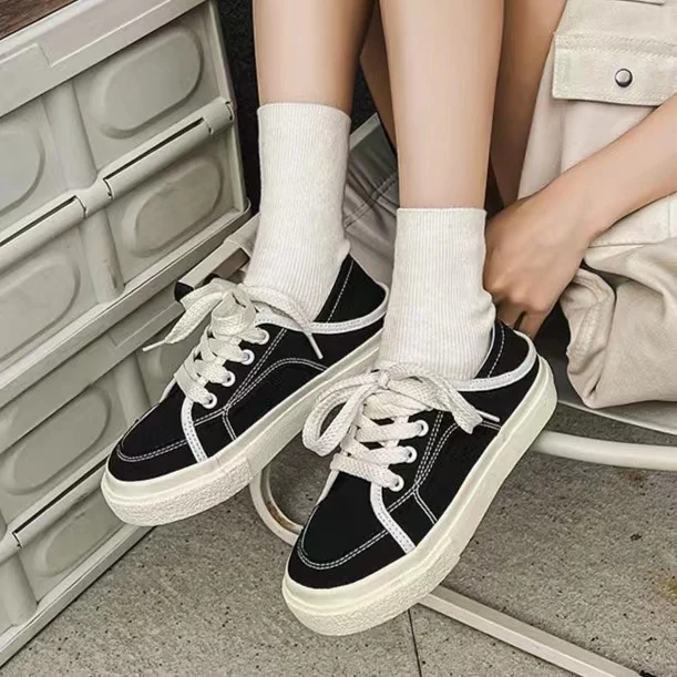 TAVIMART - Women's Sneakers, Classic Black Canvas Shoes, Platform Casual Vulcanized Shoes Luxurious Designer Shoes, Female Sports Shoes