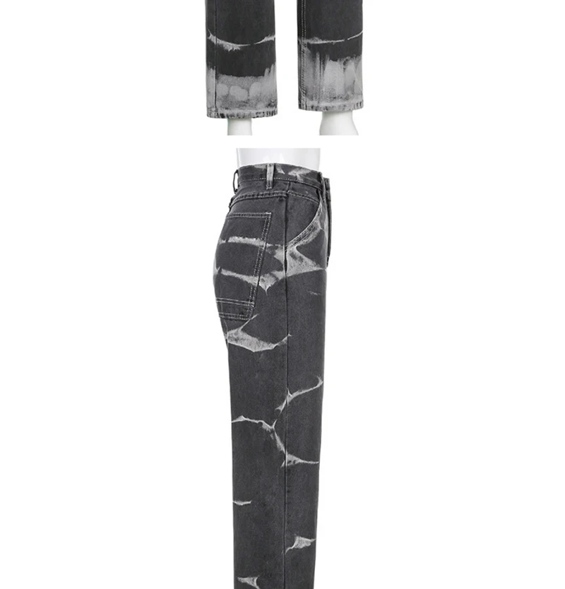 TAVIMART - Women's Straight Jeans Y2k Streetwear New High Waist Tie Dye Print Casual Denim Harajuku Baggy Trouser 90s Vintage Pants